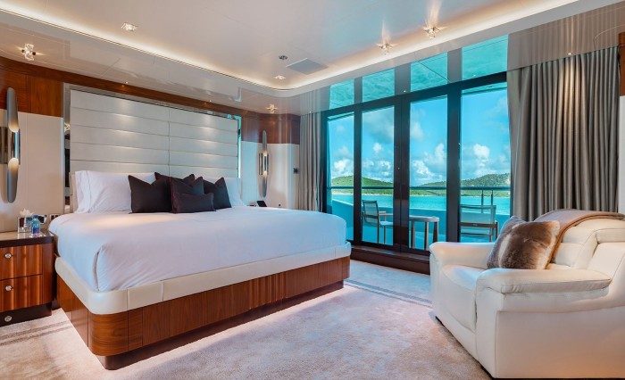 Quantum of Solace offers guest accommodation for up to 12 guests in 7 suites comprising a master suite, one VIP cabin and five twin cabins. The supremely spacious full beam master suite incorporates its own study. She is also capable of carrying up to 18 crew onboard to ensure a relaxed luxury yacht charter experience.