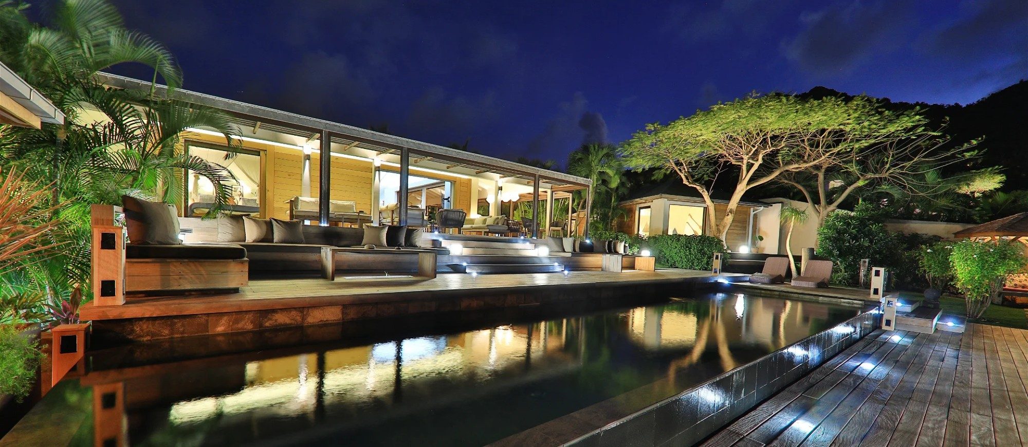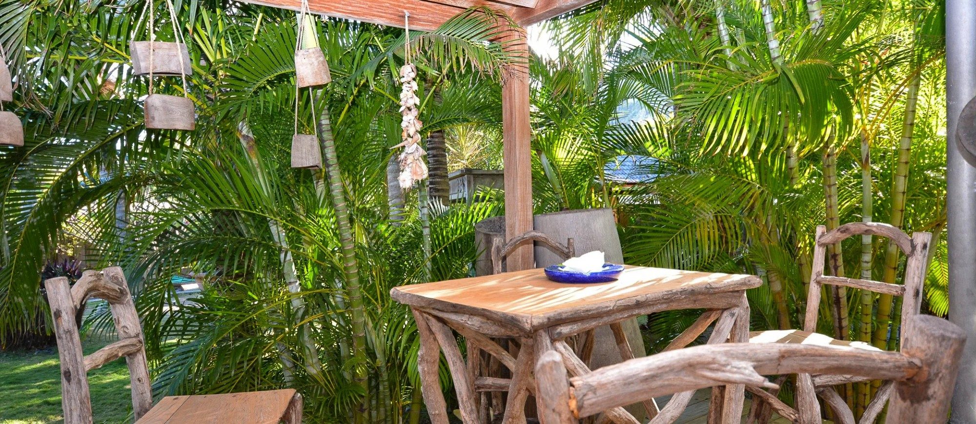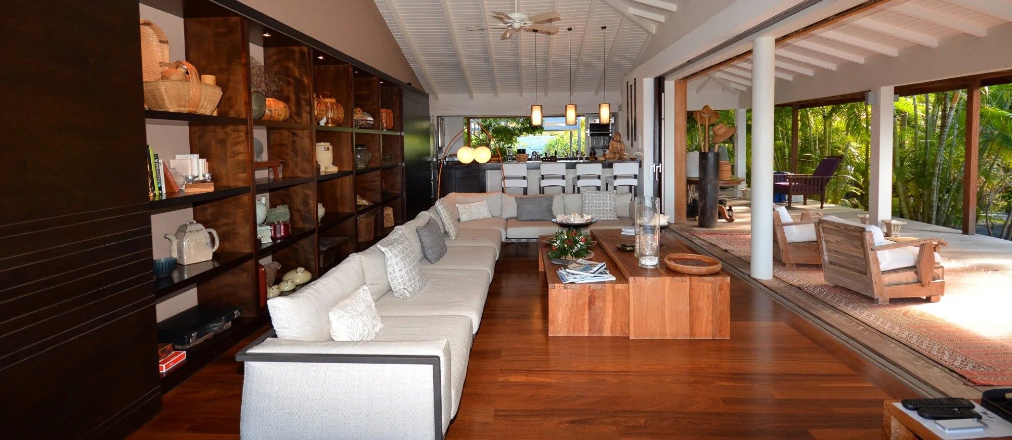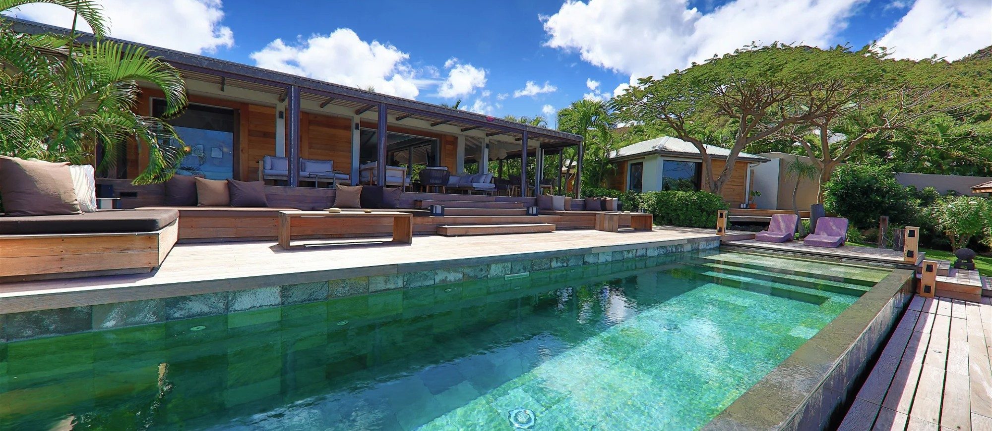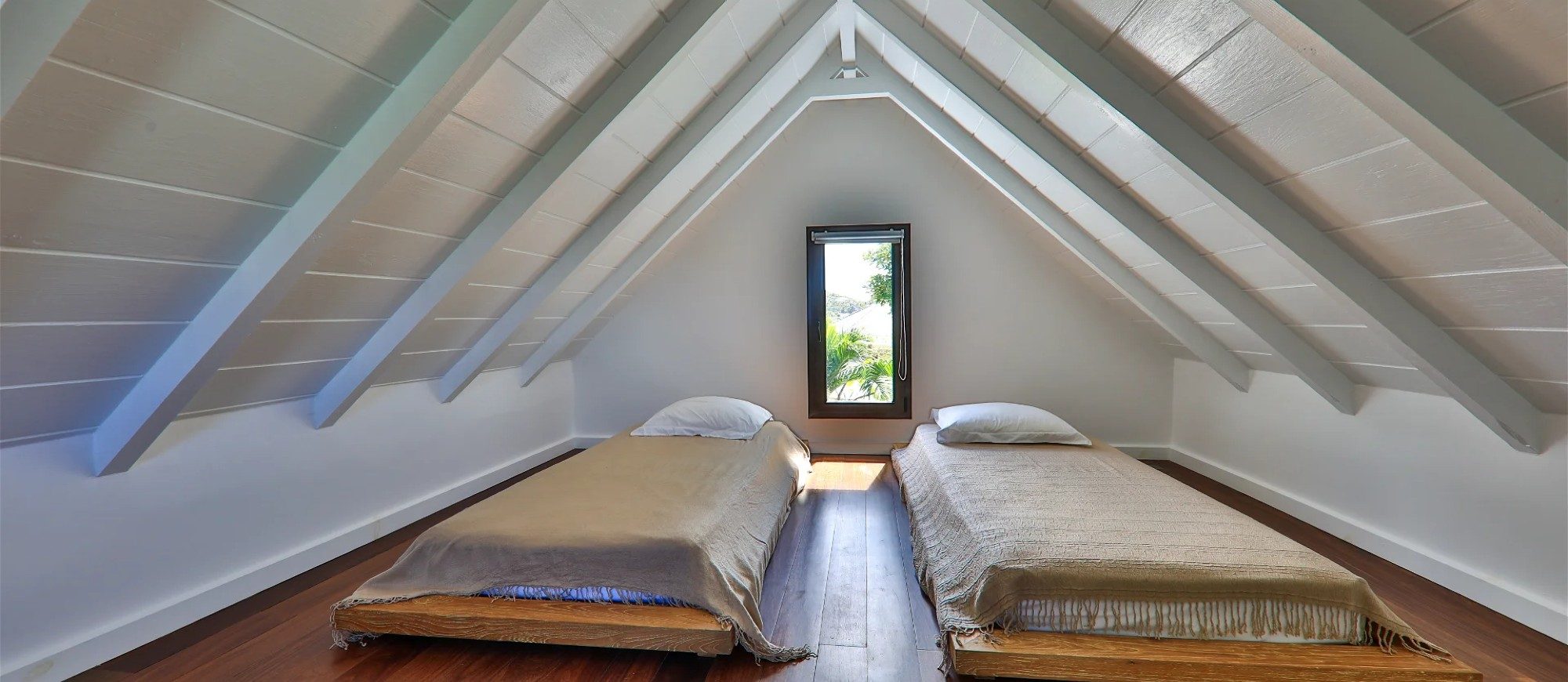 The property is composed of five large air-conditioned bedrooms furnished in Balinese style. Two of them are located in the main building, and have a king size bed, en-suite bathrooms and direct access to the swimming pool and to the garden. Two other bedrooms are located in a separate bungalow, with king size beds and private bathrooms. The fifth bedroom is located at the back of the villa with a garden view and an en-suite bathroom. It is composed of two twin beds and two single beds on the mezzanine. Finally, under an ‘ajoupa’ close to the swimming pool, there is a fitness room equipped with a massage table, elliptical trainer and treadmill.