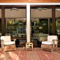 Large library, HD-TV, Dish network, ceiling fan. Outdoor living area facing the view.