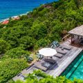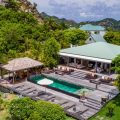 With Balinese inspired decoration, this a luxurious haven of peace and serenity, in lush tropical vegetation on the heights of Anse des Cayes. Built in traditional architecture on one level, the property extends over several bungalows around a central building facing the ocean.