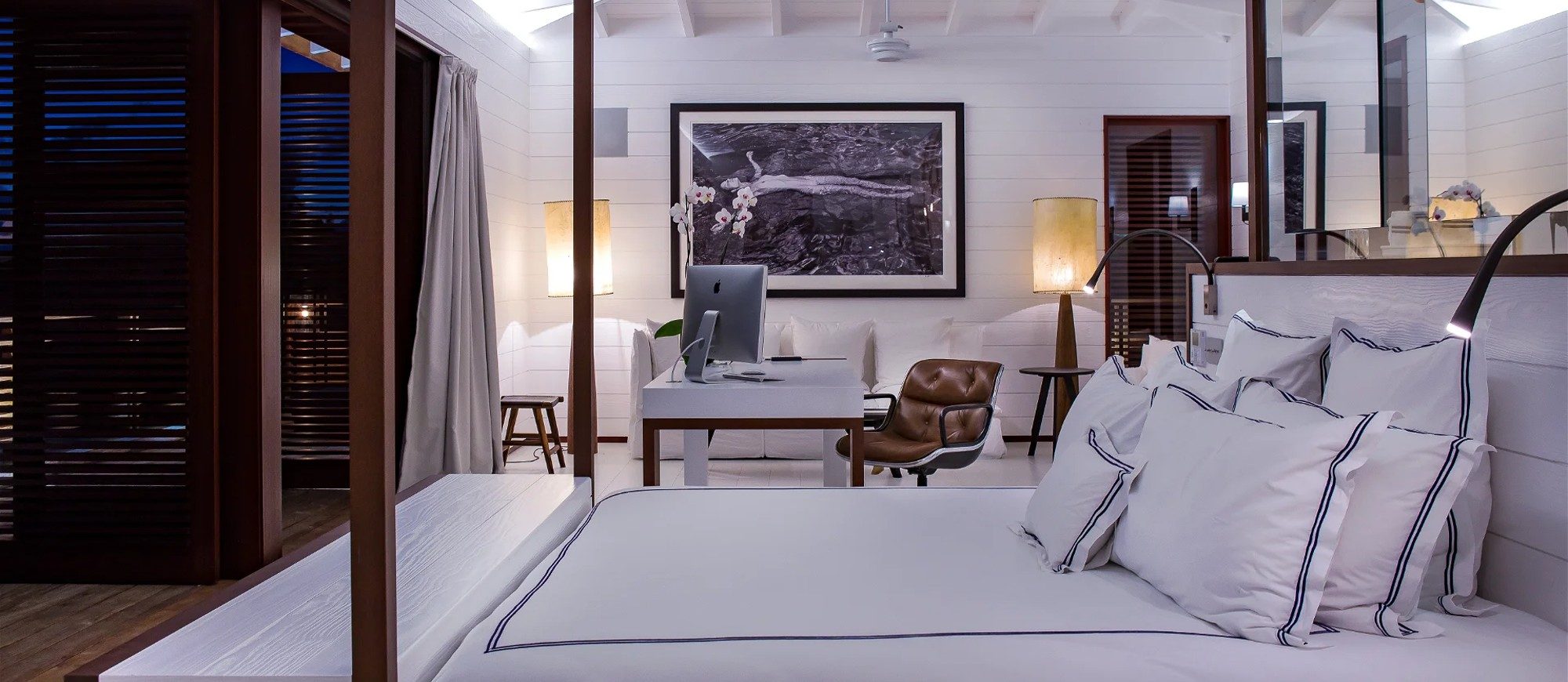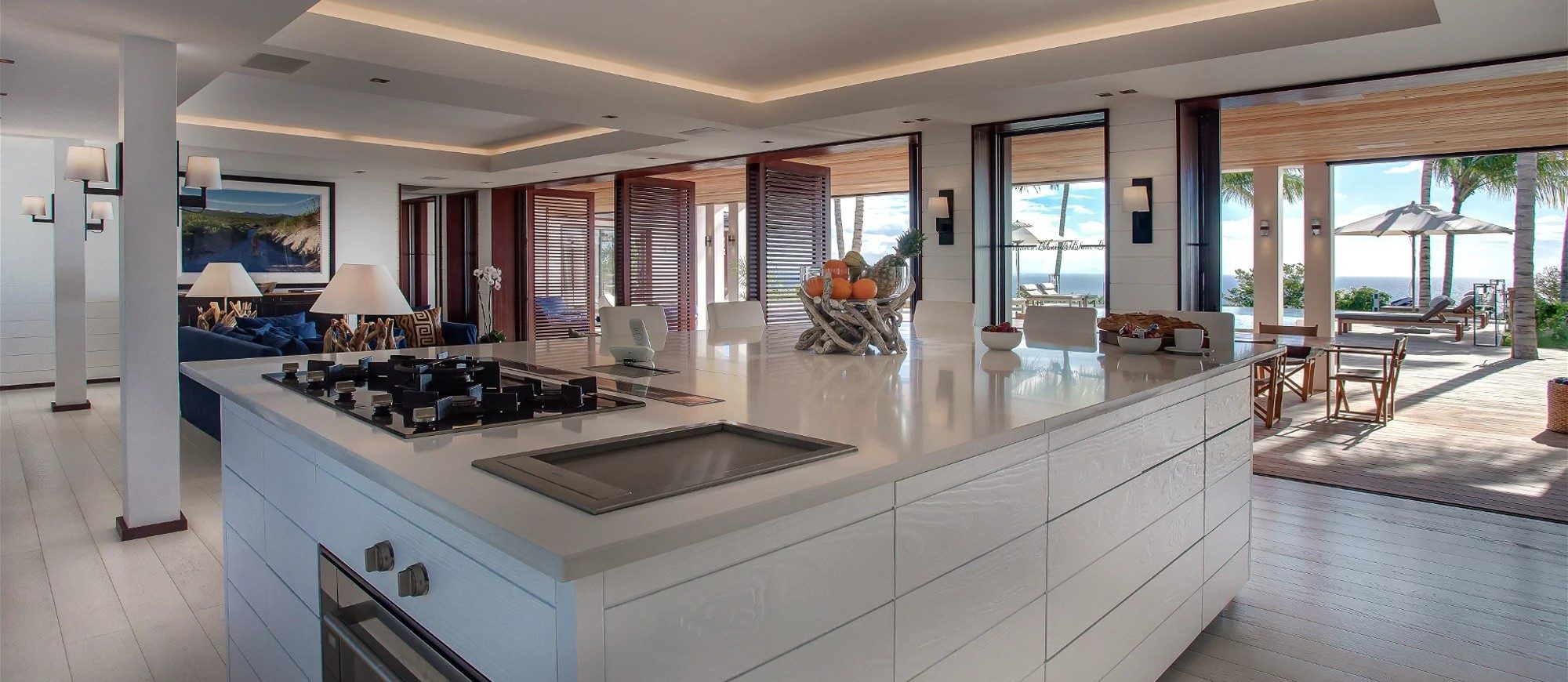 All the bedrooms have king size or twin beds, an ocean view and en-suite bathrooms with indoor or outdoor showers. There’s an elegant simplicity to Blanc Bleu’s lines, angles and open spaces that give the house an almost nautical feel as well as an egalitarian allocation of room space with each bedroom enjoying sea views and generous proportions.
