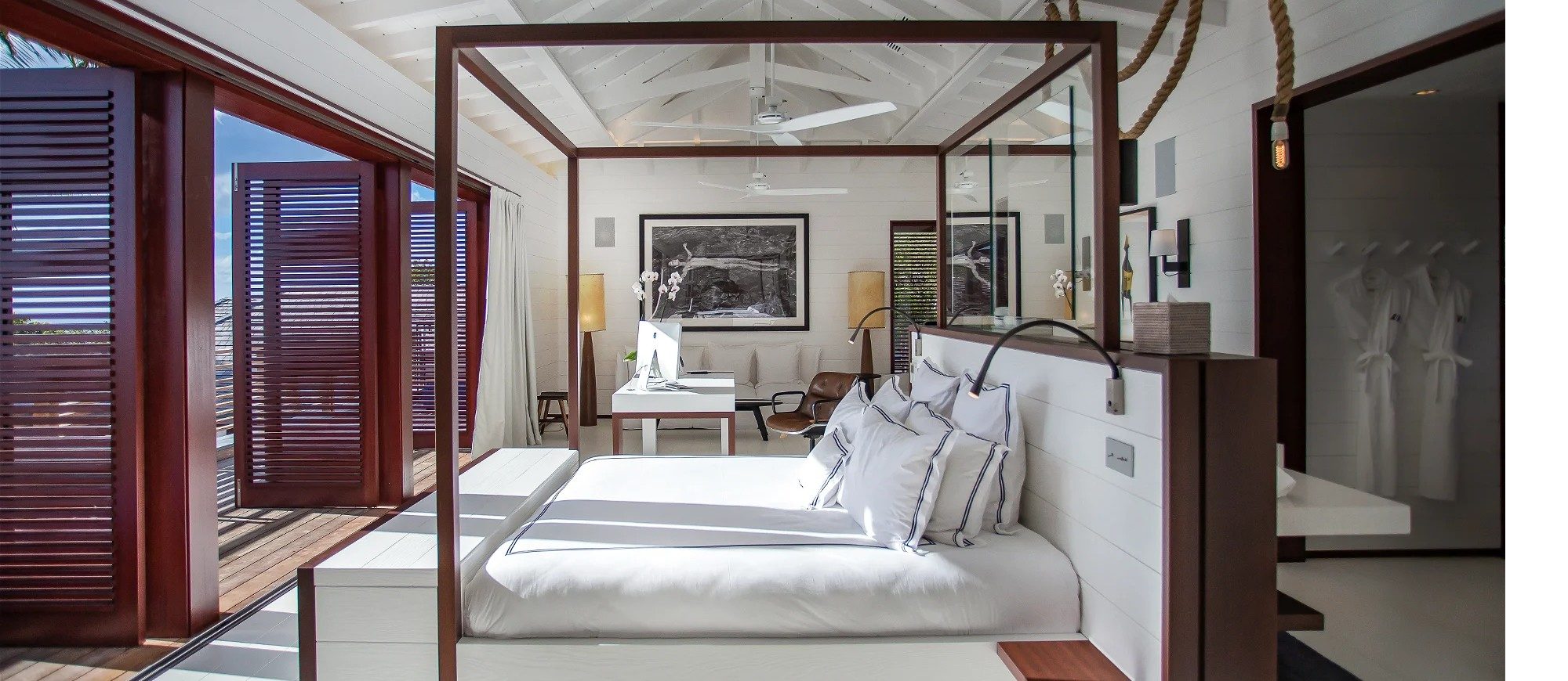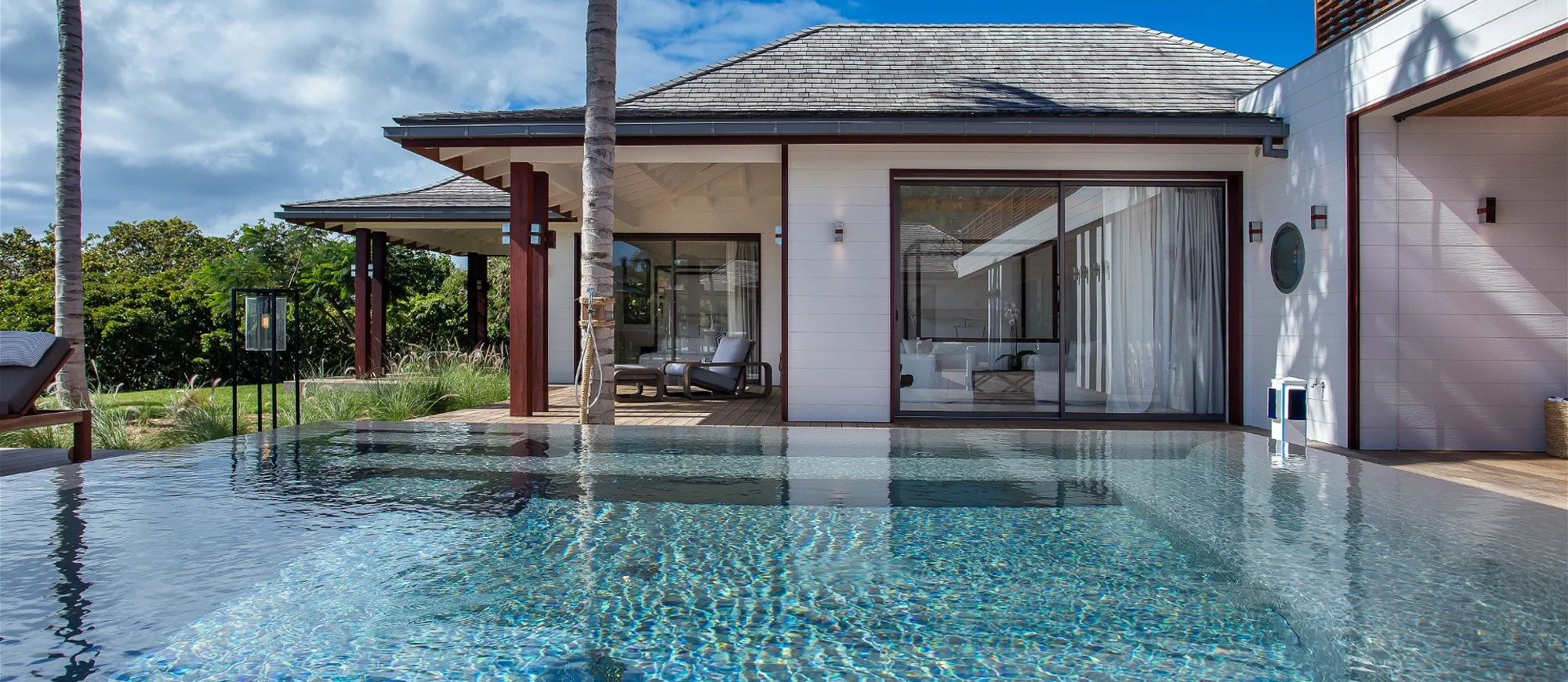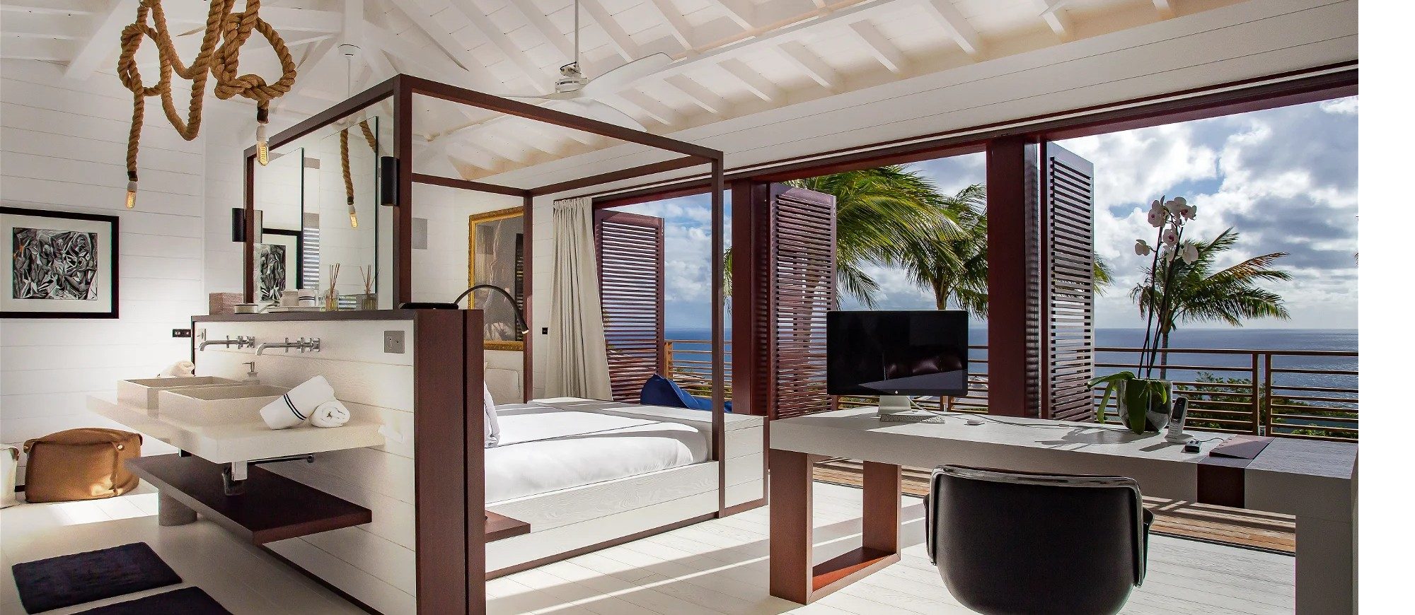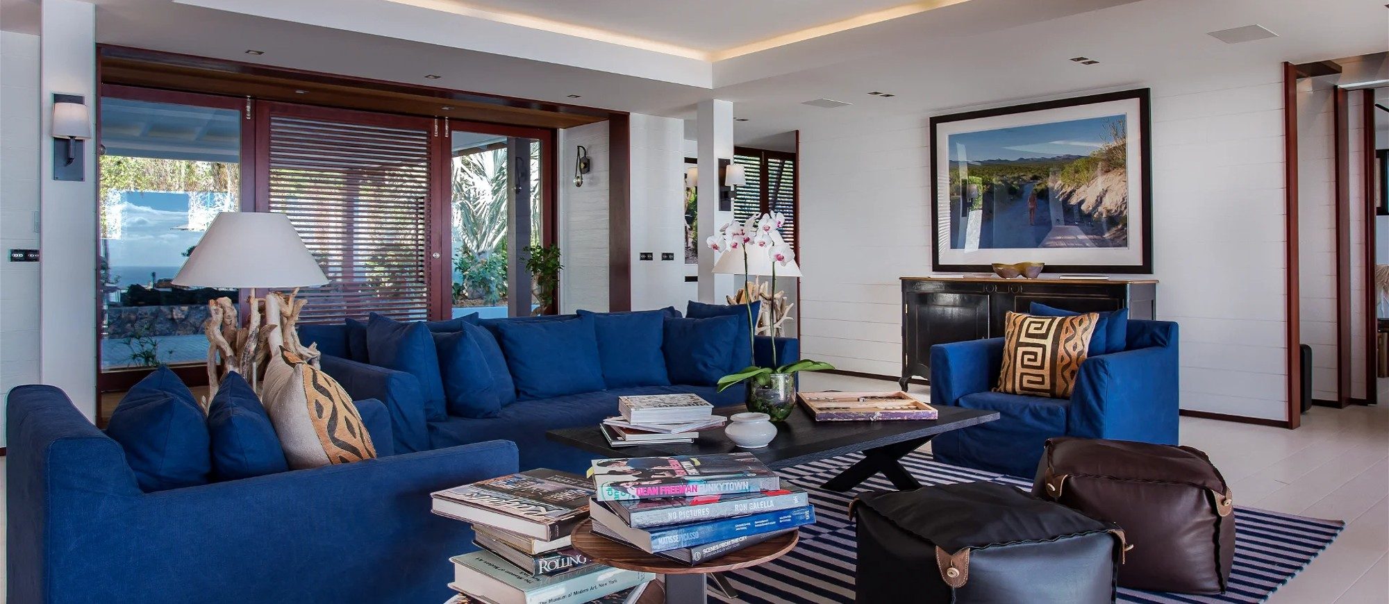 Exclusive property a few minutes from Gouverneur Beach, and close to Gustavia. Shades of blue from the sea to the sky, elegant simplicity combined with an almost nautical feel