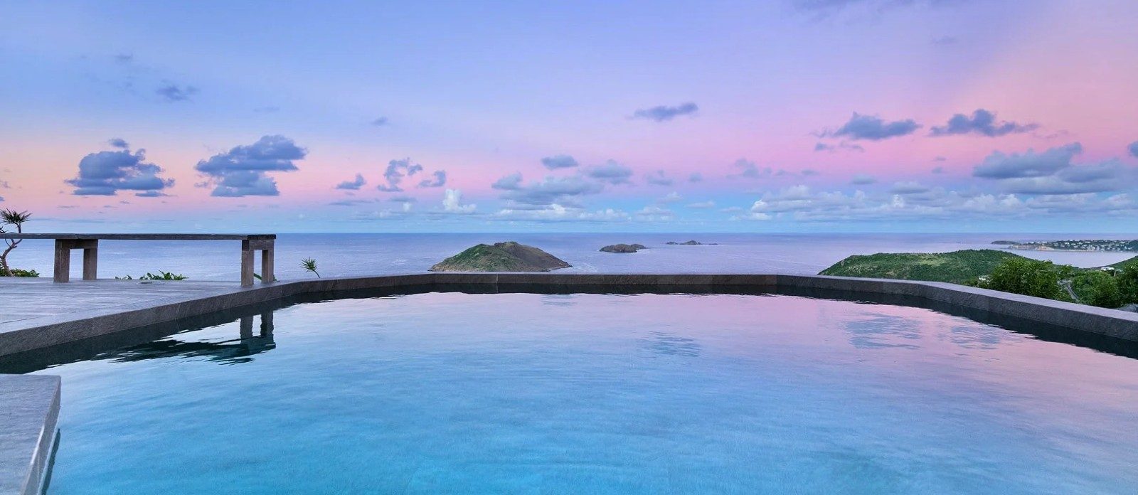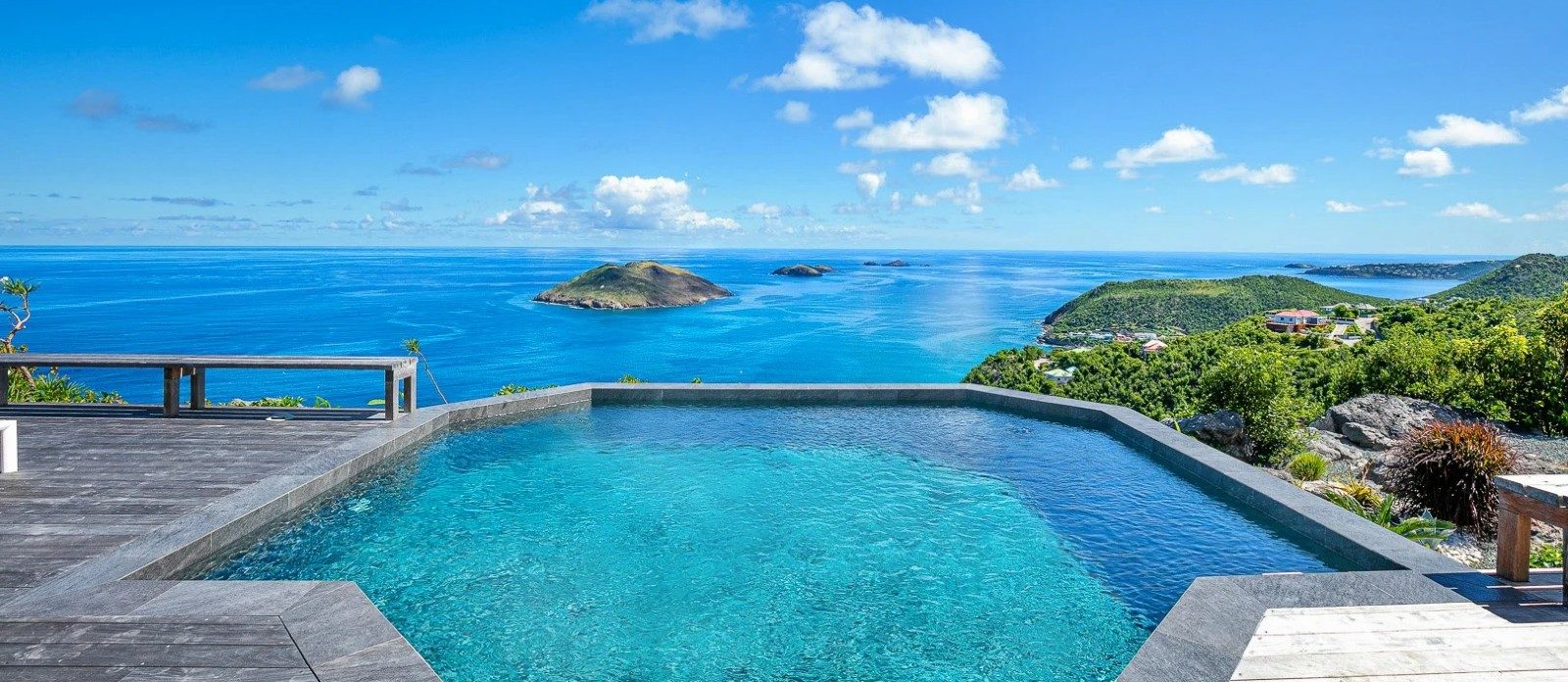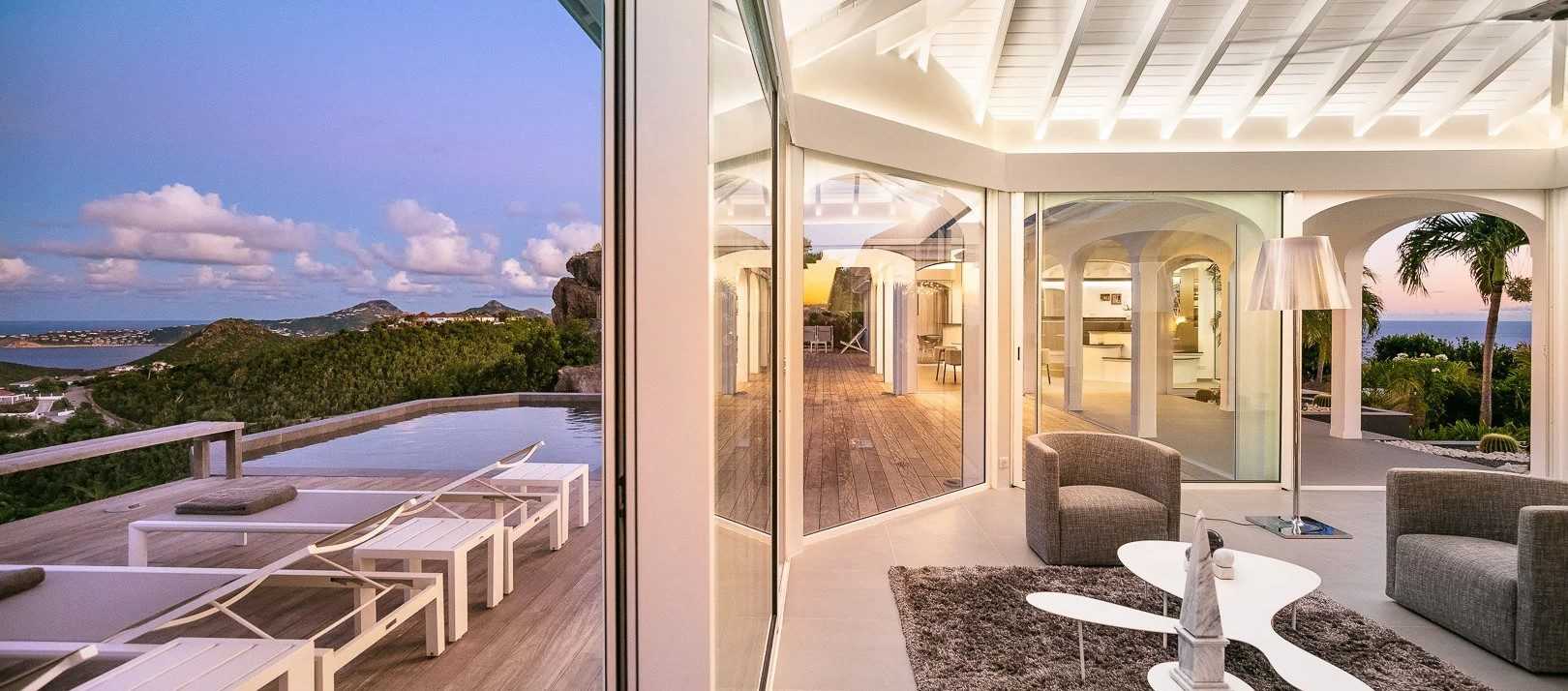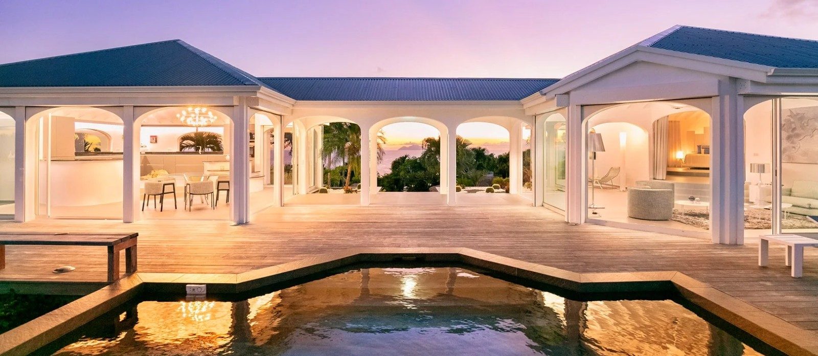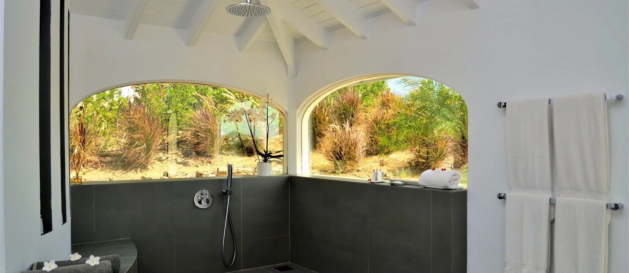 Located at the top of Colombier hill, this is an outstanding property with spectacular views over the ocean and the green landscapes of St-Barthelemy. A very romantic and peacefulvilla with ancient Greek striking white decor with columns and hand-painted frescoes. .