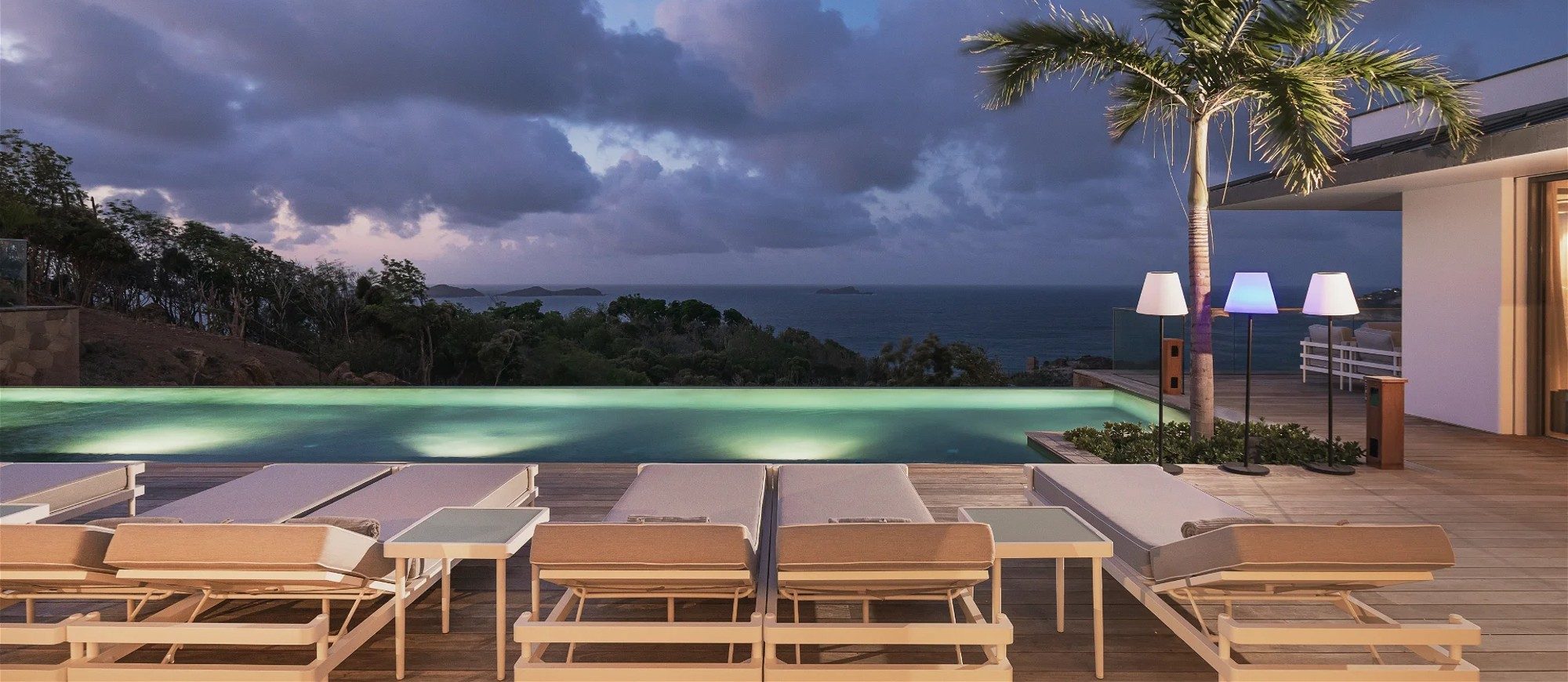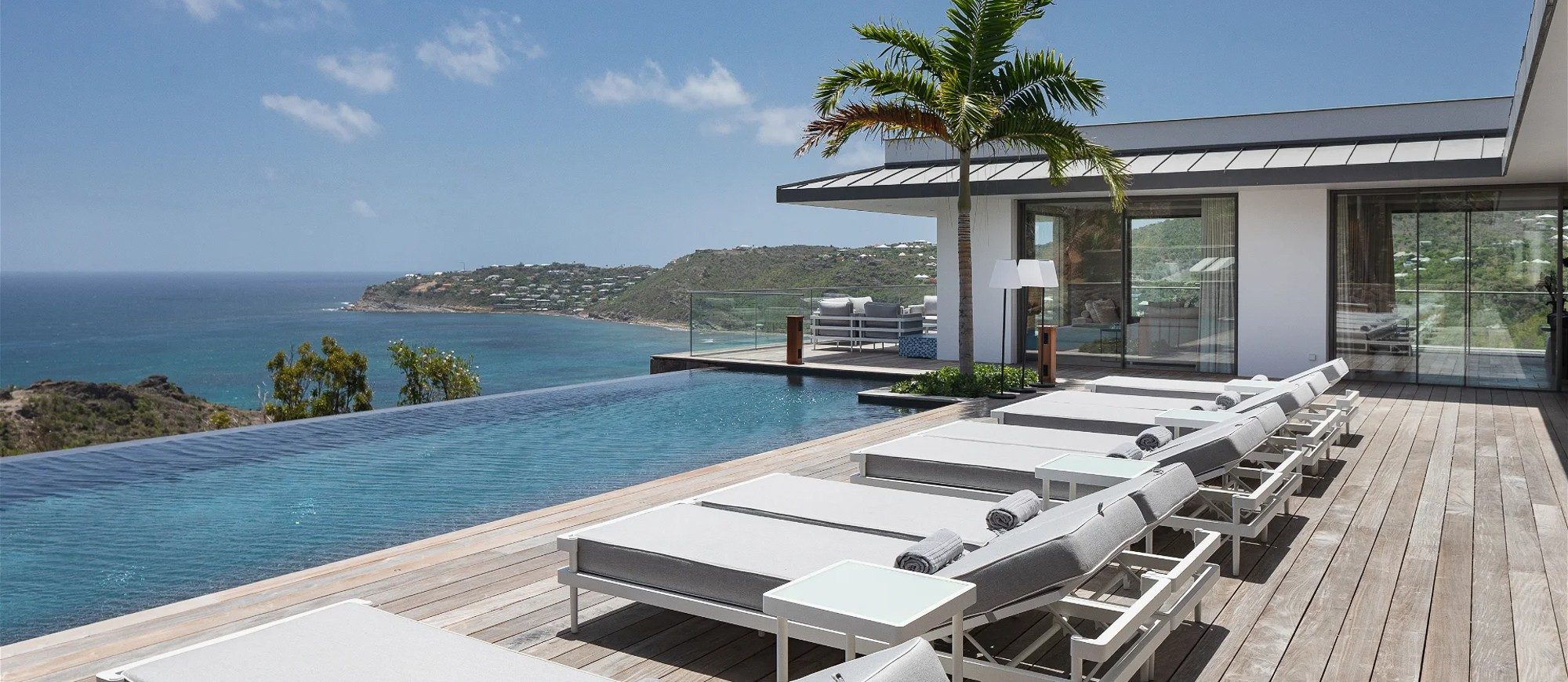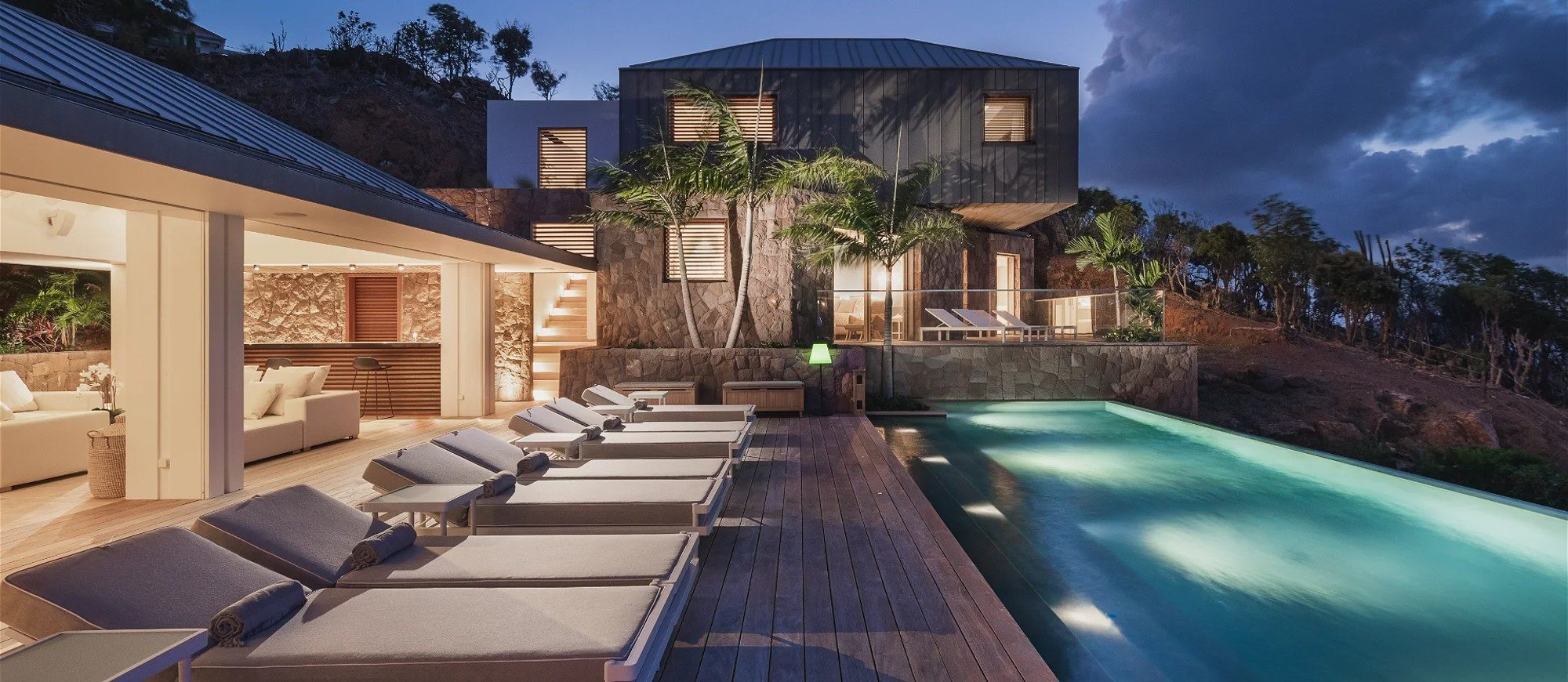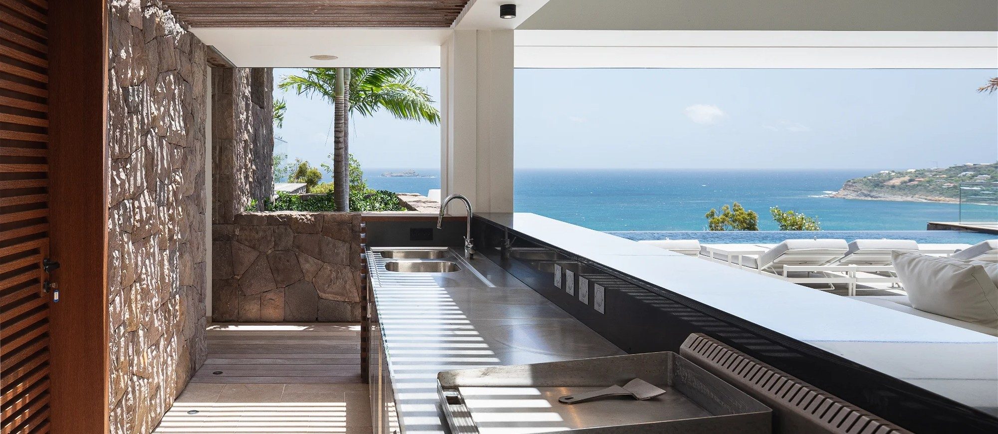 An incredible heated infinity swimming pool stretches along the main building, as a prelude to the ocean. The outdoor dining room accommodates up to twelve guests for succulent alfresco dining under the Caribbean stars. The large deck is furnished with lounge chairs and soft cushions in a heavenly setting of palm trees mixed with Caribbean hills. In the heart of tropical nature, sunbathing and reading sessions overlooking the ocean will make your stay unforgettable.