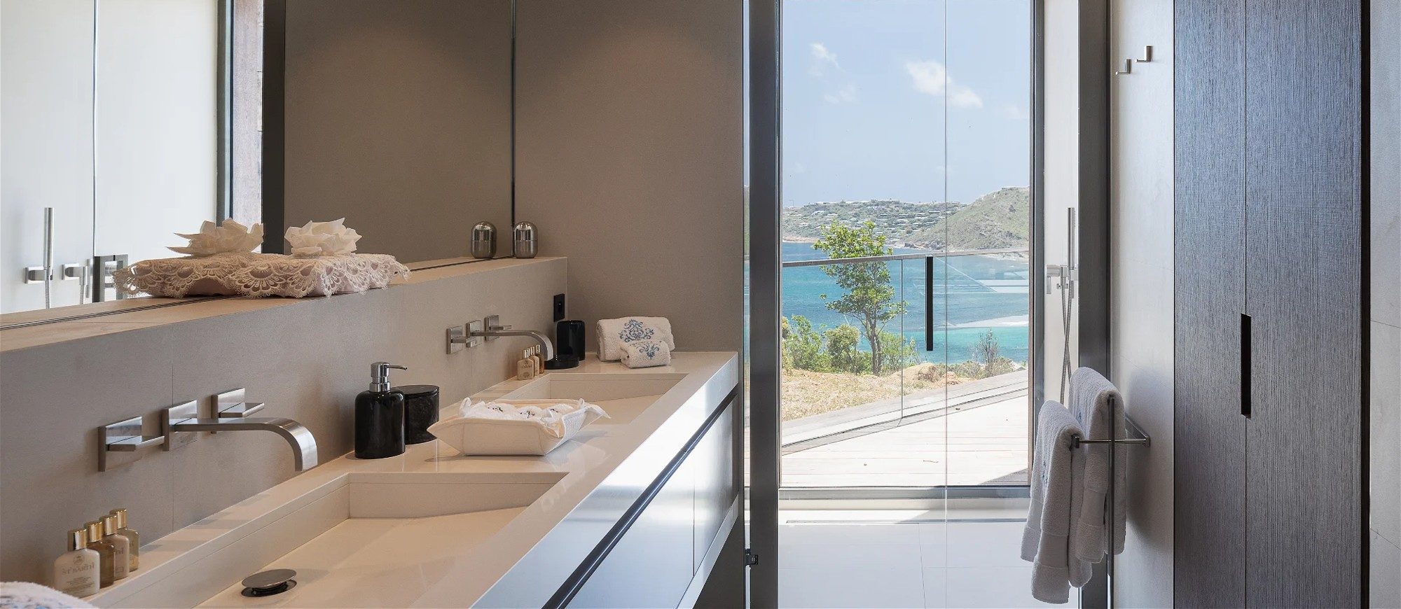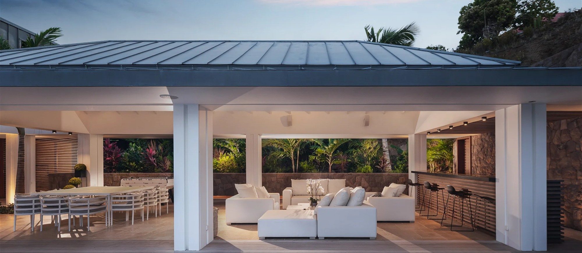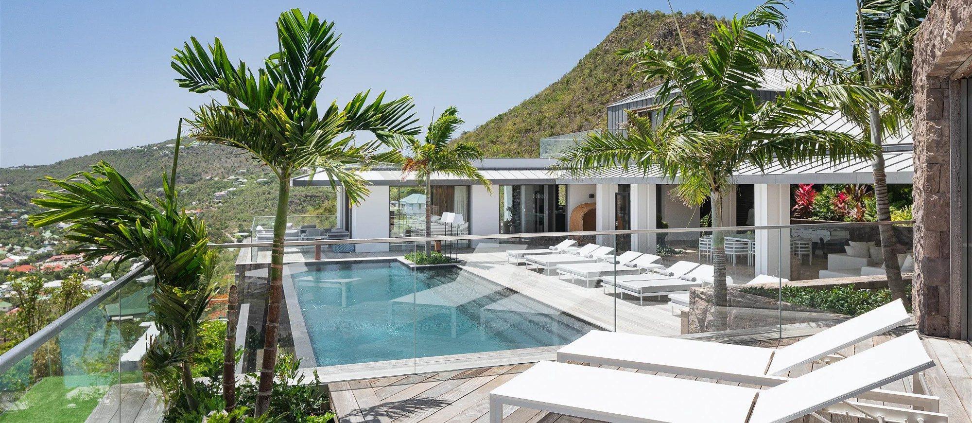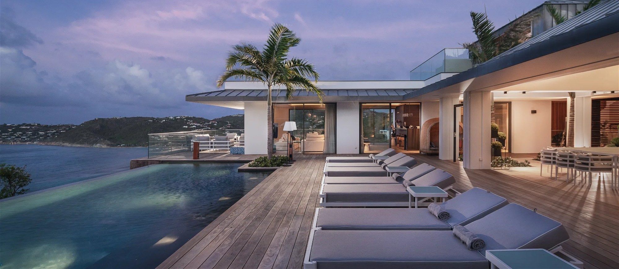 An incredible heated infinity swimming pool stretches along the main building, as a prelude to the ocean. The outdoor dining room accommodates up to twelve guests for succulent alfresco dining under the Caribbean stars. The large deck is furnished with lounge chairs and soft cushions in a heavenly setting of palm trees mixed with Caribbean hills. In the heart of tropical nature, sunbathing and reading sessions overlooking the ocean will make your stay unforgettable.