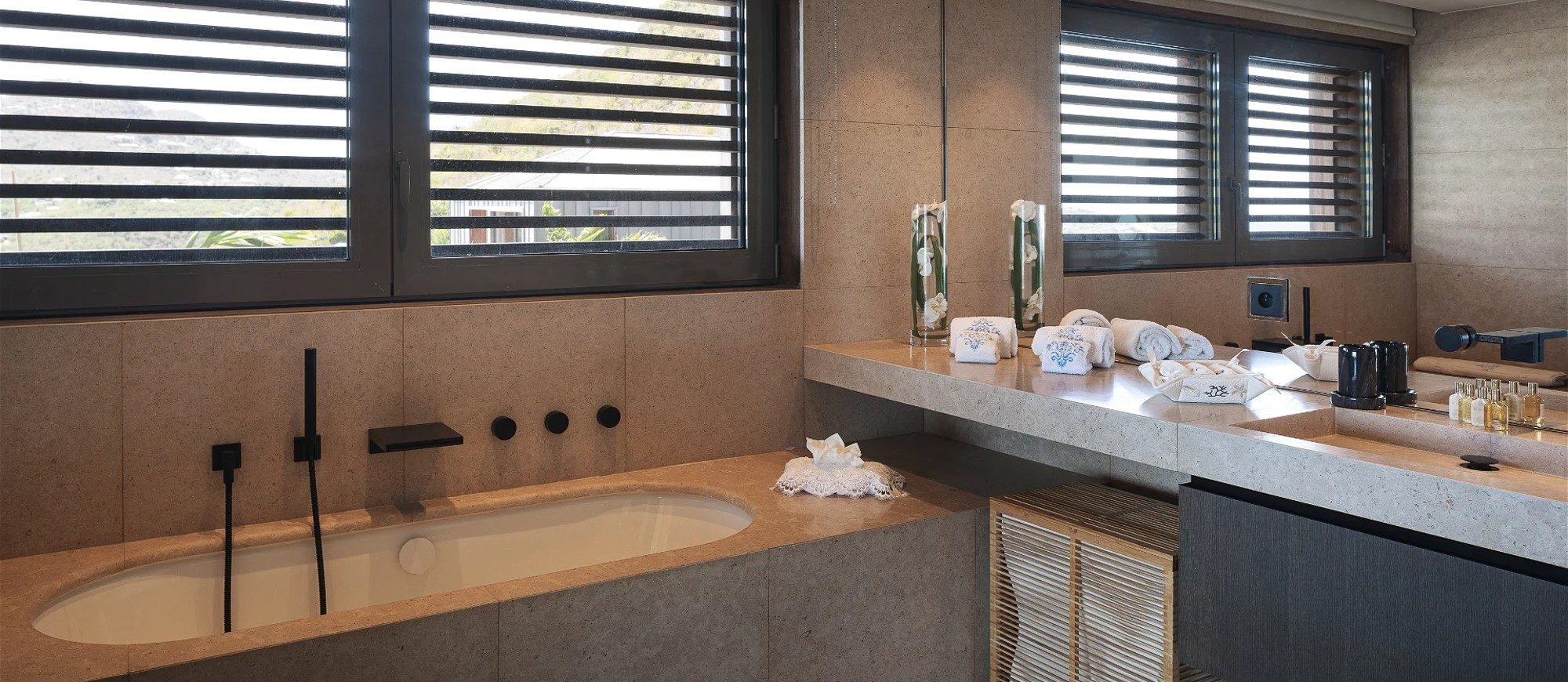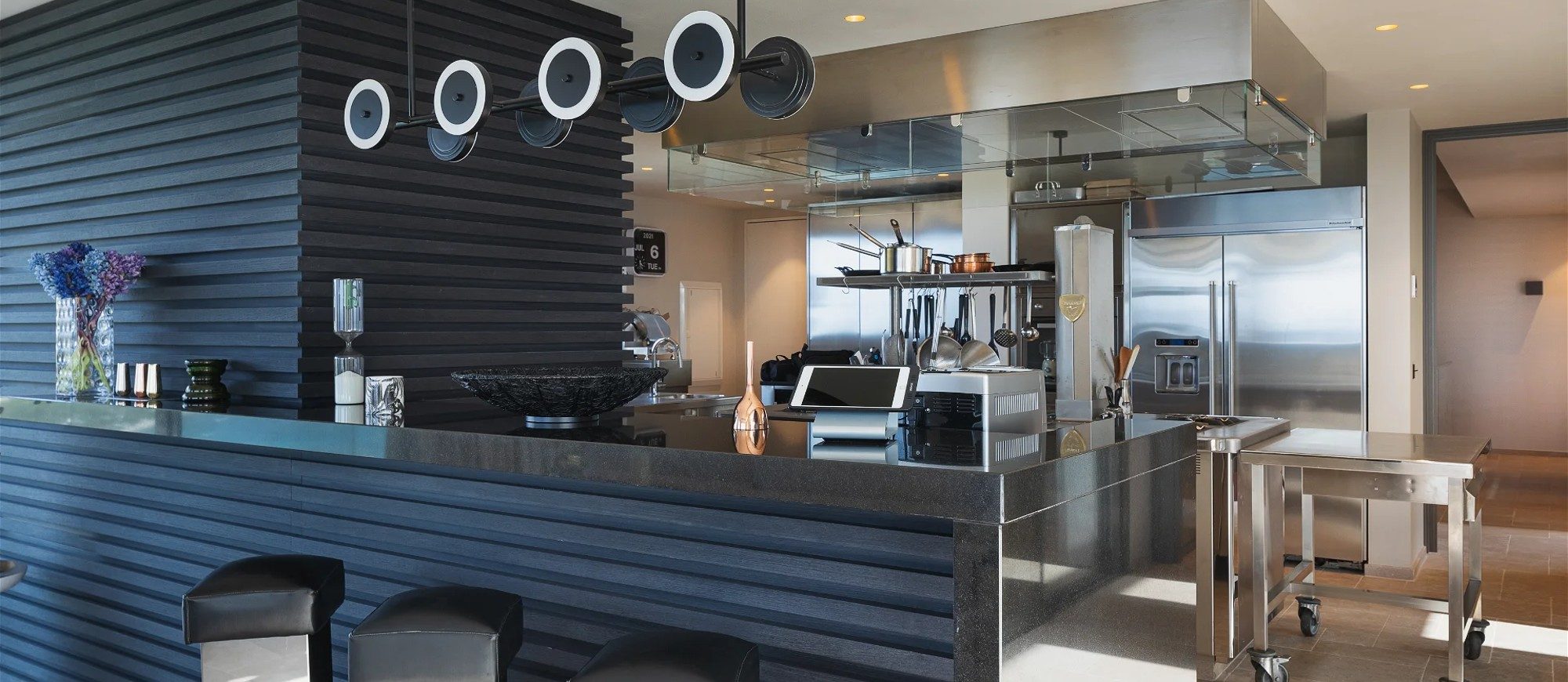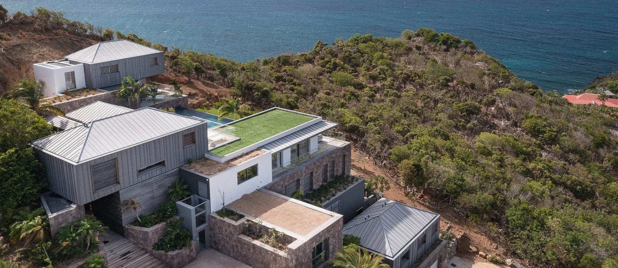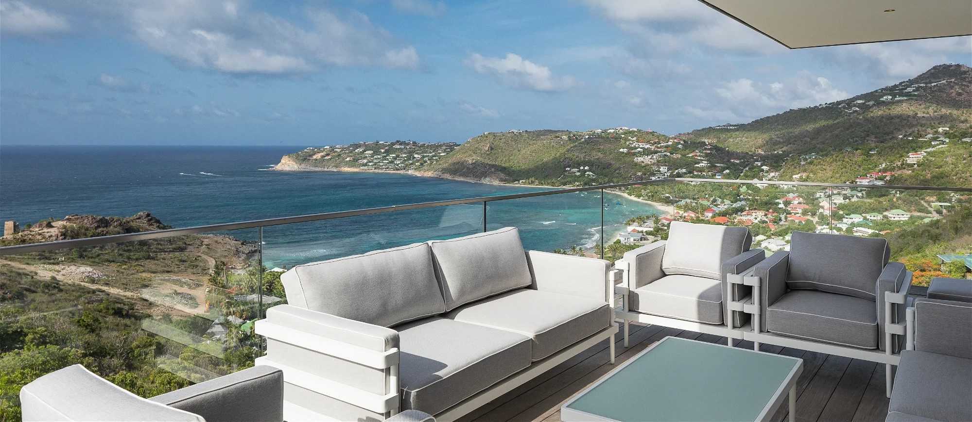 There are seven air-conditioned bedrooms with king or queen size beds and en-suite bathrooms. They are spread over three levels on several buildings, and open onto magnificent ocean views; the seventh room, ideal for staff or for a teenager, opens onto a beautiful view over the hills. A lift is also at your disposal to reach the other levels with greater ease and comfort. Sports lovers will appreciate the air-conditioned fitness room with upscale equipment.