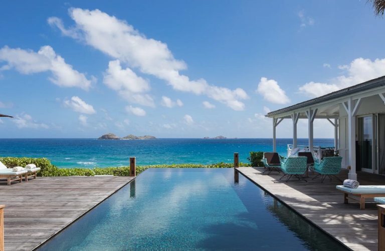 A large colonial style property on a hillside above Anse des Lézards with great views. Possible to rent with four bedroom property next door.