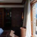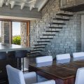 There is a large living room with stones, parquet and woodwork under a beautiful mansard ceiling. Decoration and furnishing are luxurious: the soft sofas are covered with cream cushions, and the lighting is contemporary. The large windows let in the light and gentle sea breeze. The kitchen is very well-equipped and opens onto the indoor dining room. There are several covered terraces.