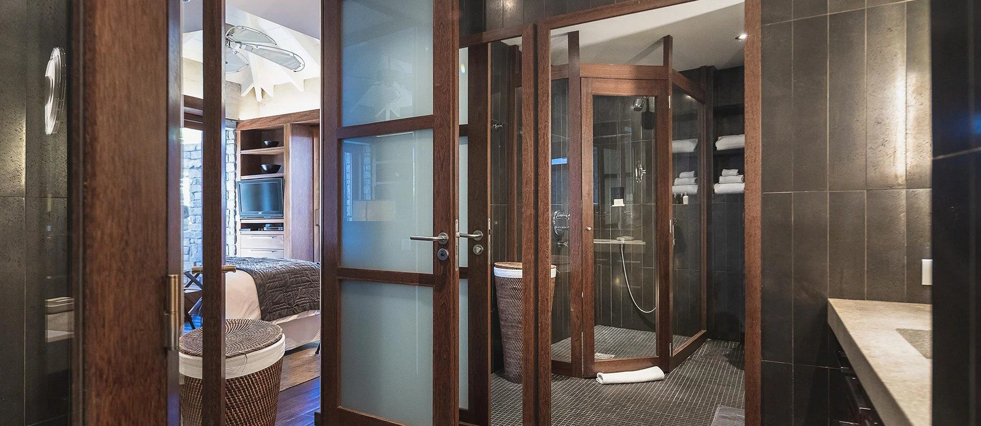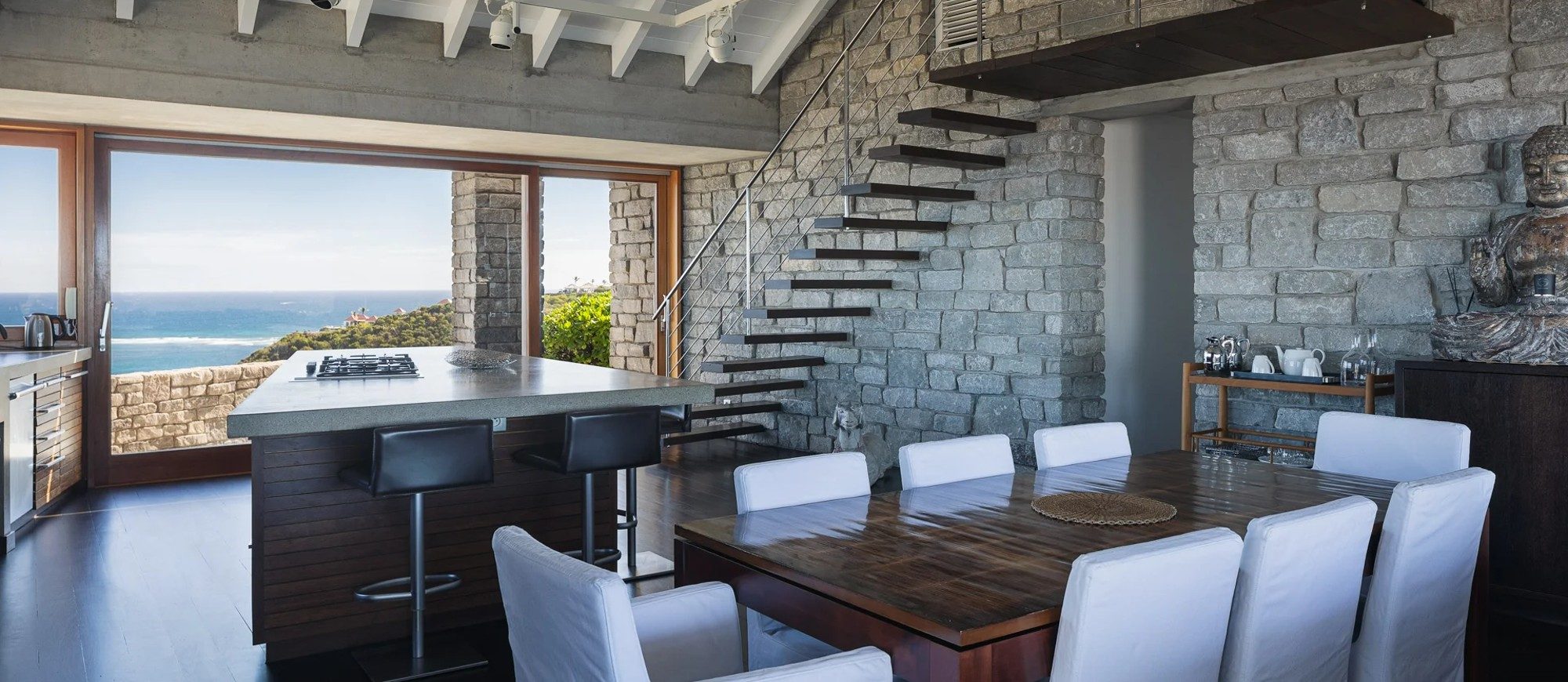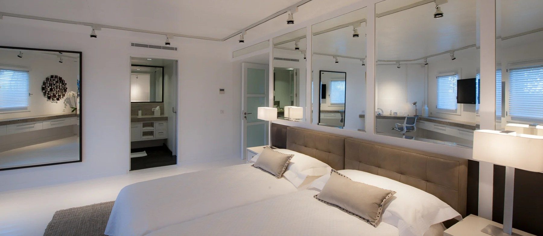 There are five large bedrooms, three on the living and swimming pool level, the other two on the lower level, which is furnished as a contemporary loft. All the bedrooms have king size beds and en-suite bathrooms.