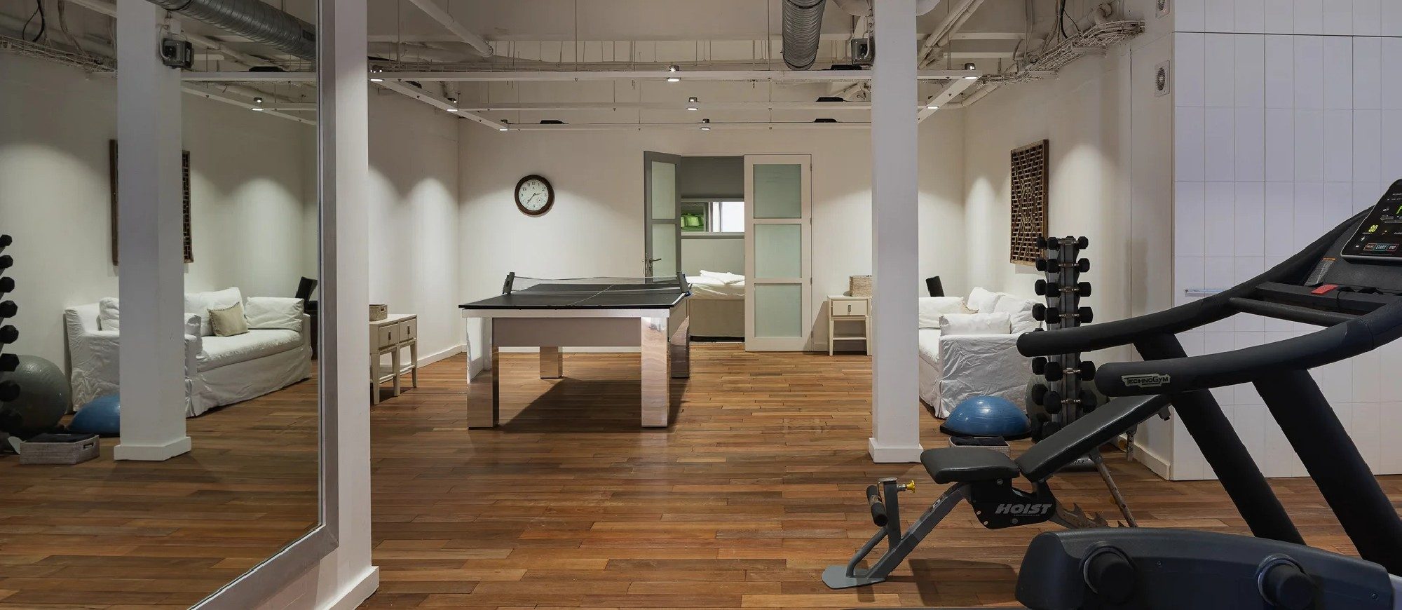 There is a fitness room, an air-conditioned massage room, a ping pong table, and, in the garden, a pool table.