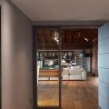 The modern outdoor lighting creates a chic and charming atmosphere.