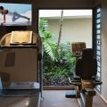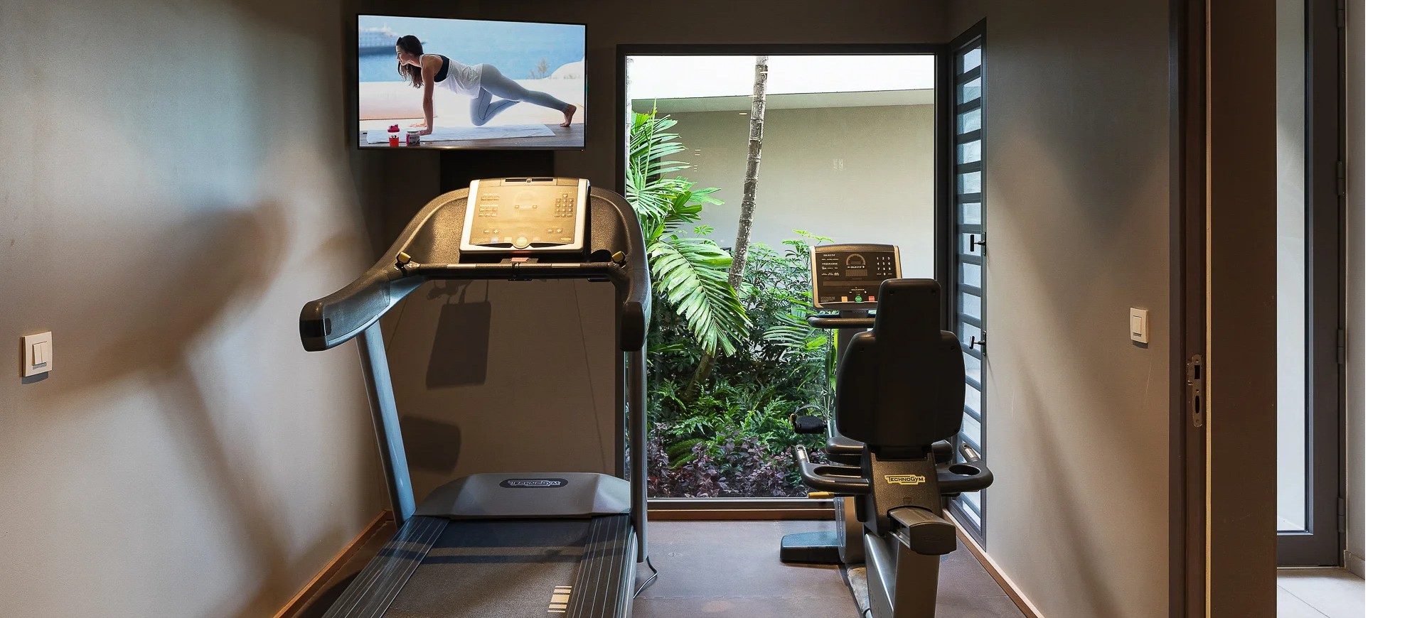 On the lower level. Air conditioned fitness room equipped with treadmill, bicycle, sauna. HD-TV, Dish Network.