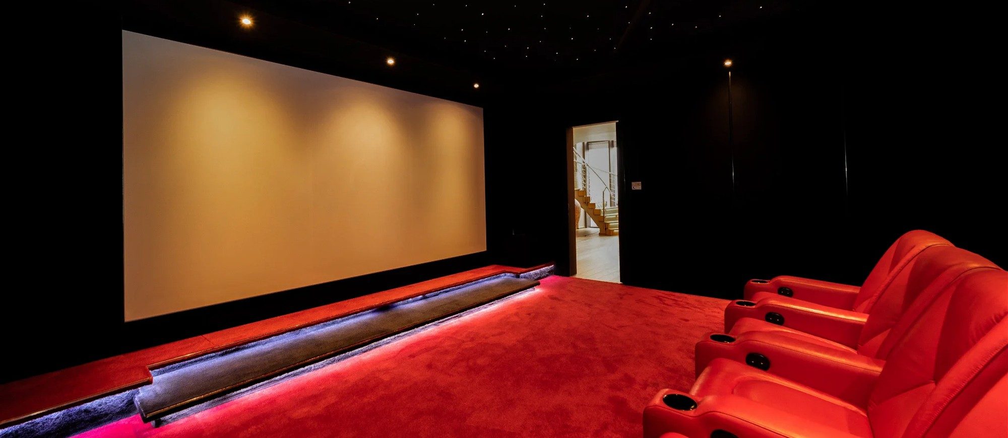 On the lower level. Air conditioned cinema room, Dish Network, Apple TV, DVD player.