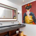 Smaller guest room, ideal for teens or staff member. Queen size bed, air conditioning, ceiling fan, HD-TV, Dish Network, safe, dressing room. Ensuite bathroom with indoor Italian shower, sink, and WC.