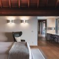 A king size bed, air conditioning, ceiling fan, HD-TV, Dish Network, safe, dressing room. Ensuite bathroom with indoor Italian shower, double sink, and WC. The bedroom opens onto the terrace and the pool.