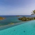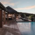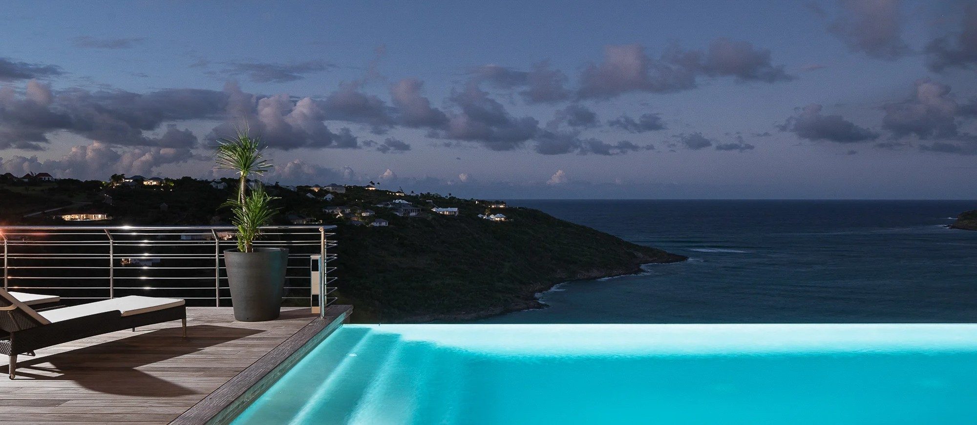 The superb heated infinity swimming pool stretches the width of the villa, seeming to merge with the deep blue ocean. Sundecks and a comfortable outdoor lounge with sofas provide a serene and quiet atmosphere under the sun, facing the perfect horizon.