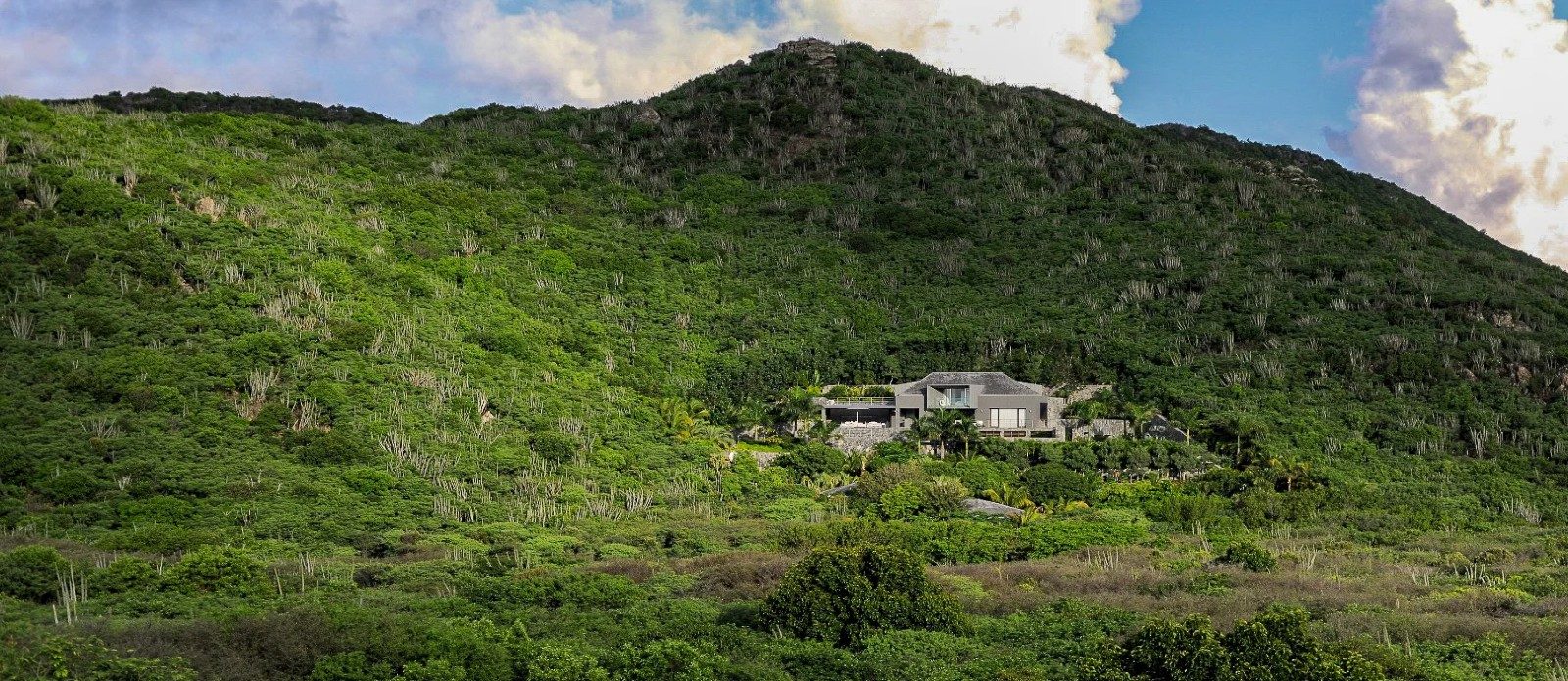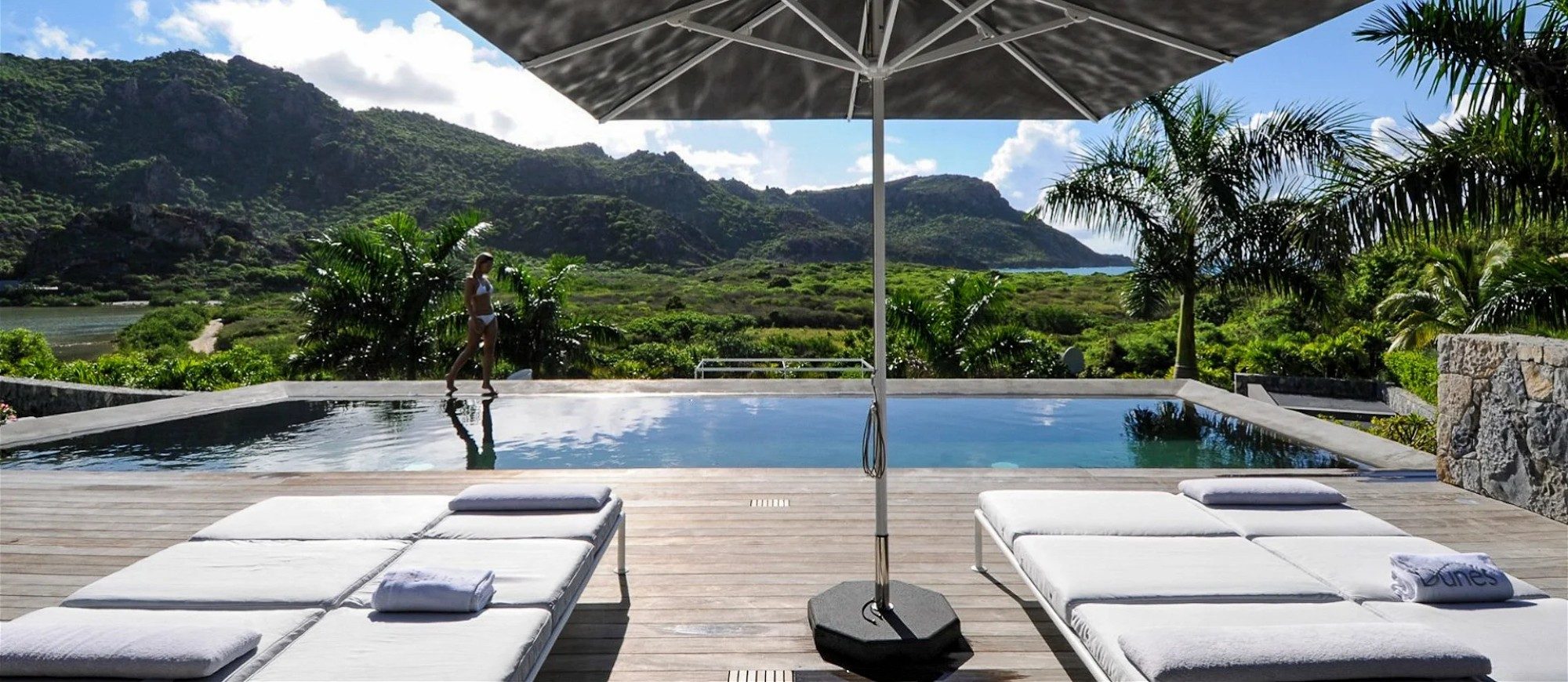 Set up into the hillside, the property overlooks both the ocean at the south and the lush tropical hills to the east, it is the only villa so close to Saline beach and its white sands. The architectural layout of this unique property consists of a main building and two guest bungalows perfect for private guests or staff accommodation.