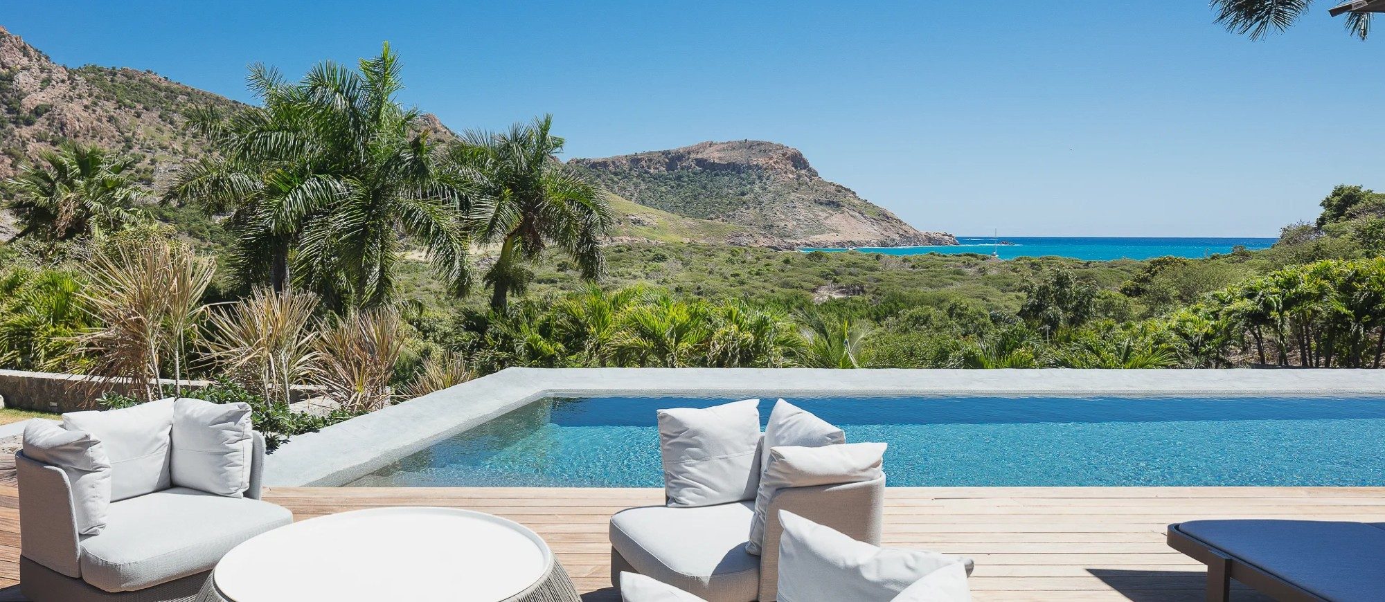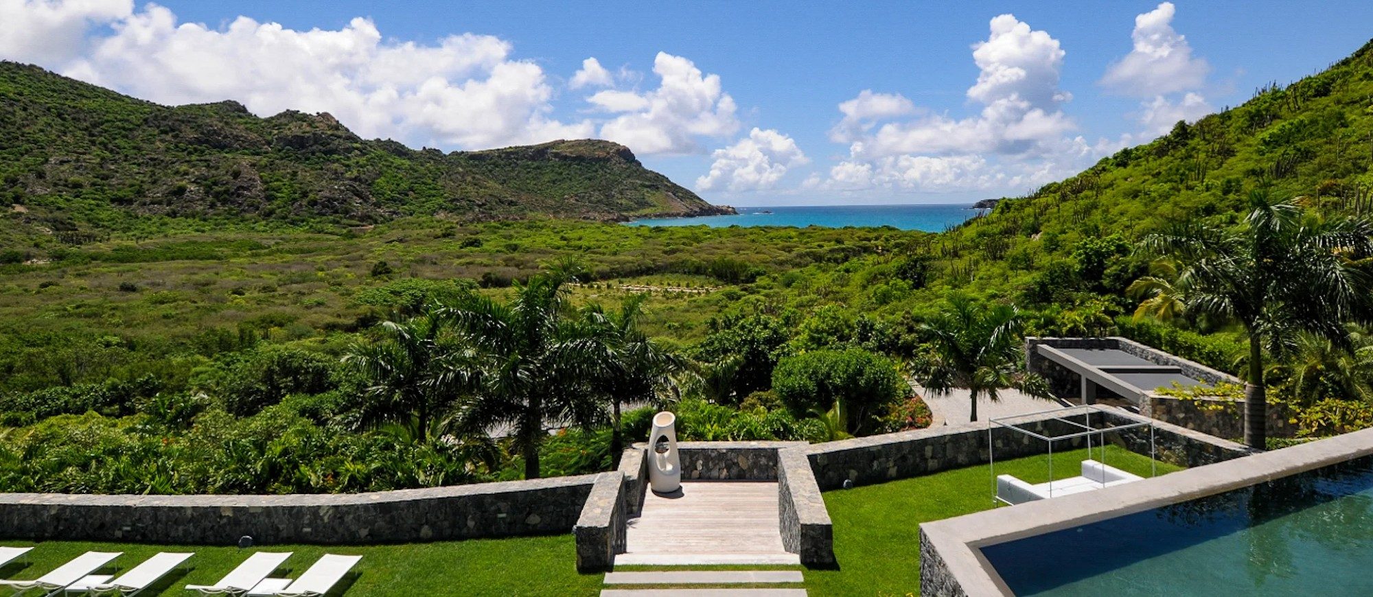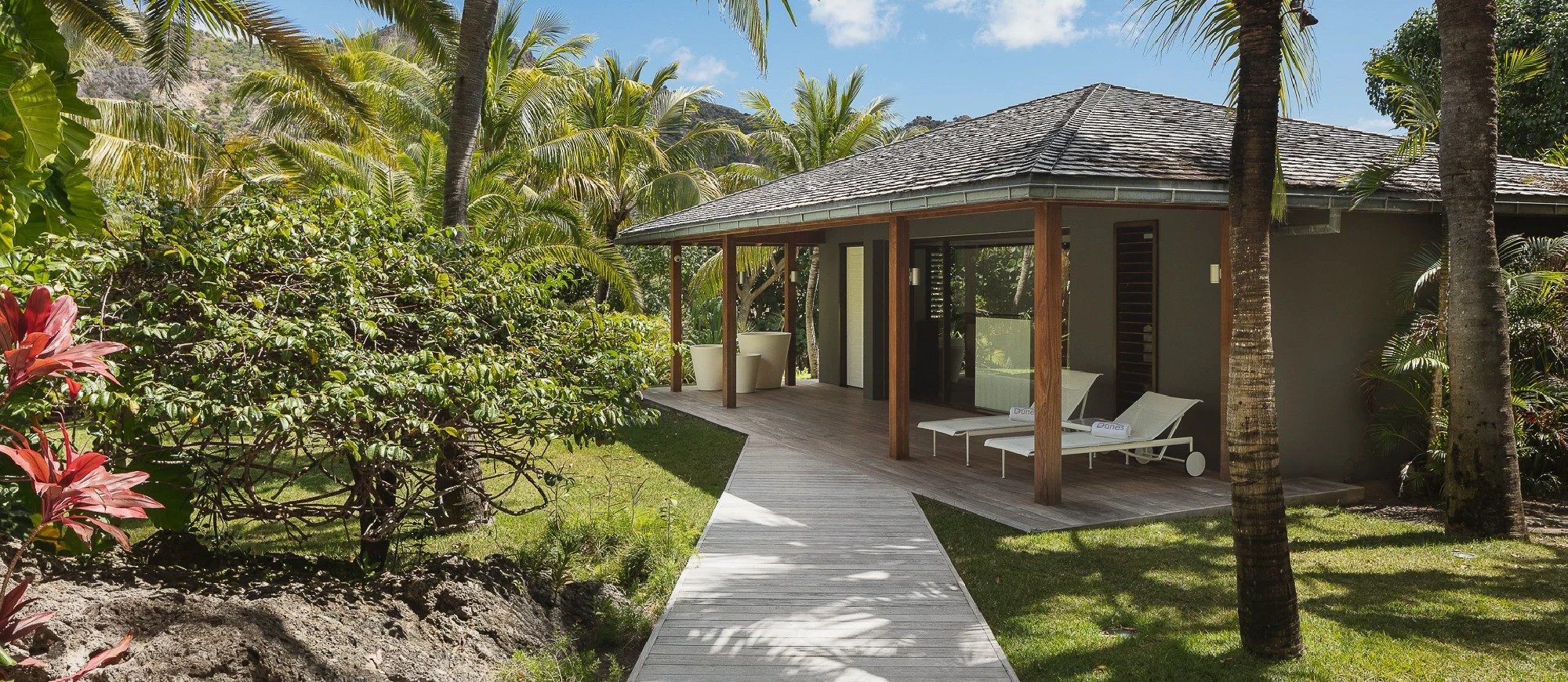 Located in the well-preserved area of Les Salines, walking distance from the magnificent beach, this is one of the most exceptional and peaceful properties in St-Barths. With a large lush tropical garden of three acres, the villa is surrounded by many varieties of bougainvillea, coconut palms and local flowering shrubs. Here you have no neighbours, and you can enjoy the great feeling of utmost privacy, away from everything.