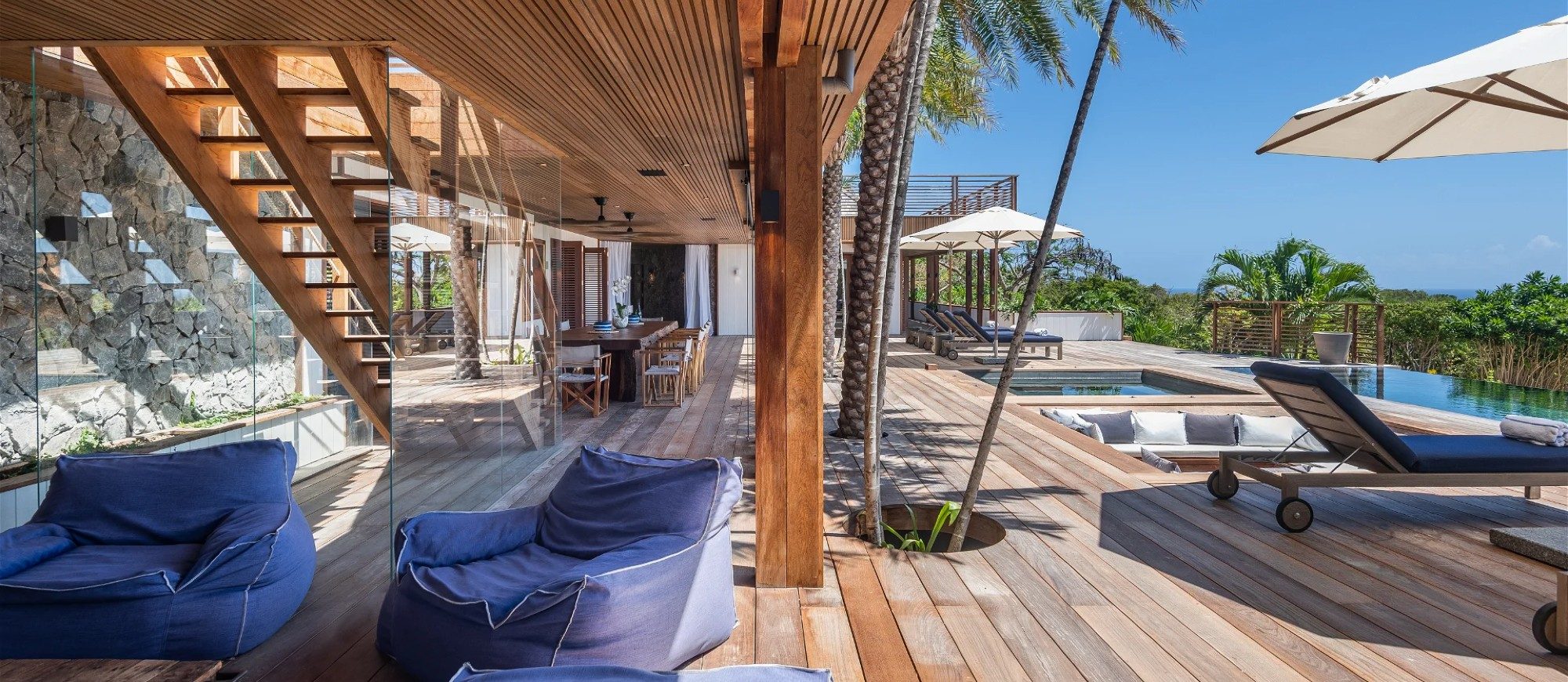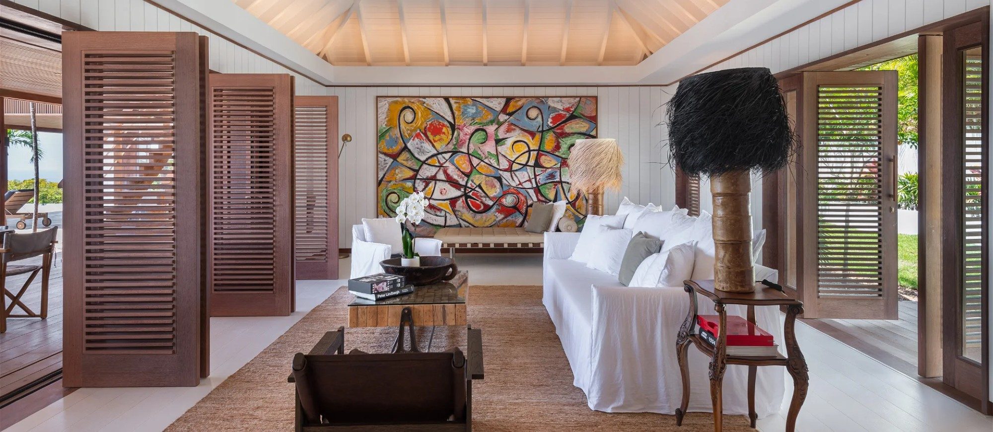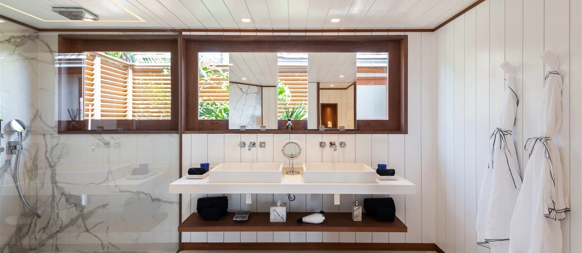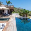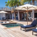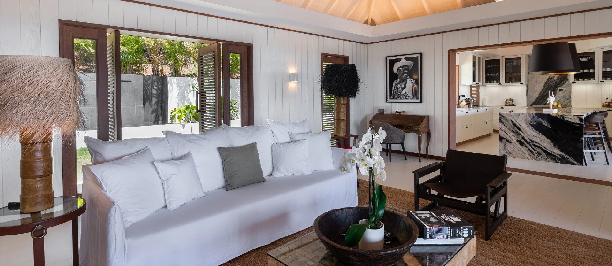 The property has six air-conditioned bedrooms with en-suite bathrooms featuring white marble, some with additional outdoor showers. All are furnished with king size beds in a bright and soft decor. Four bedrooms open onto the pool terrace, and the other two look over the tropical garden.