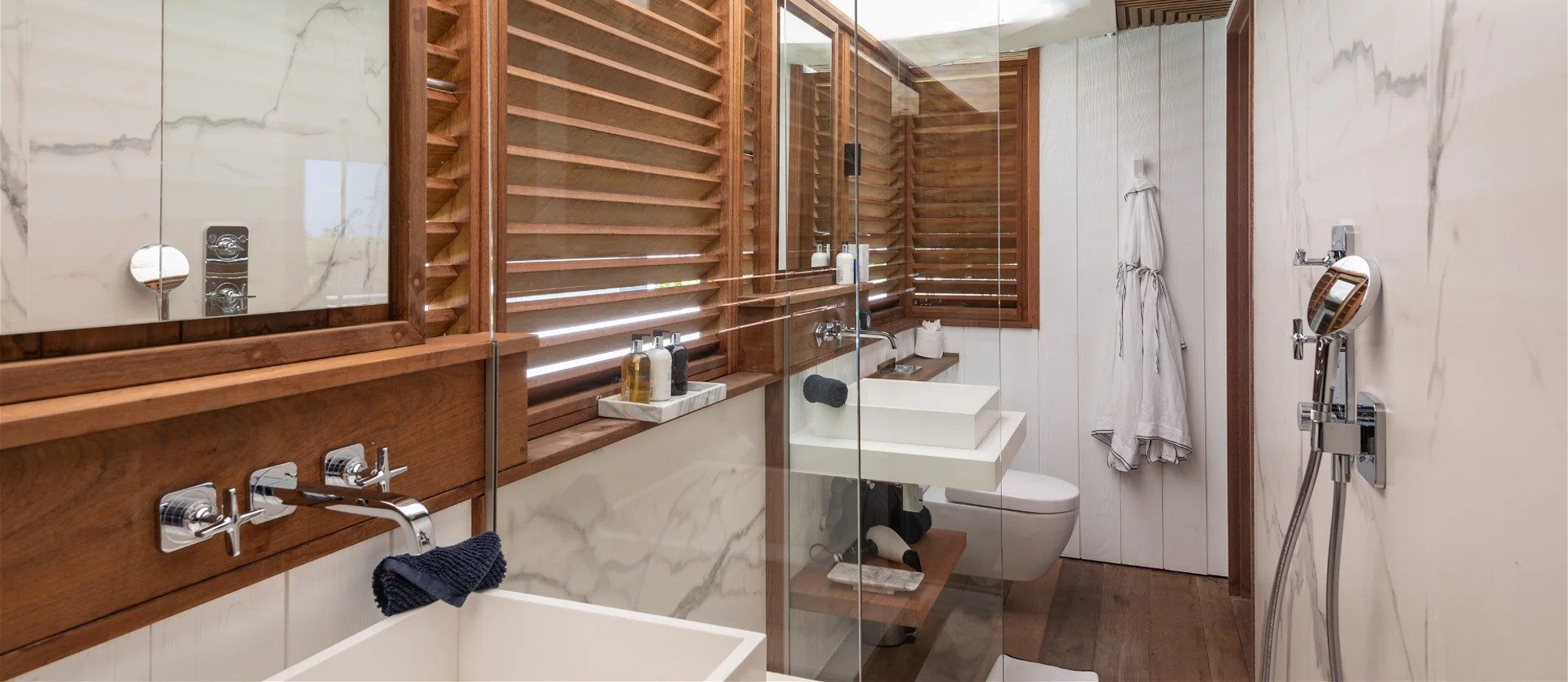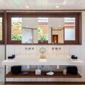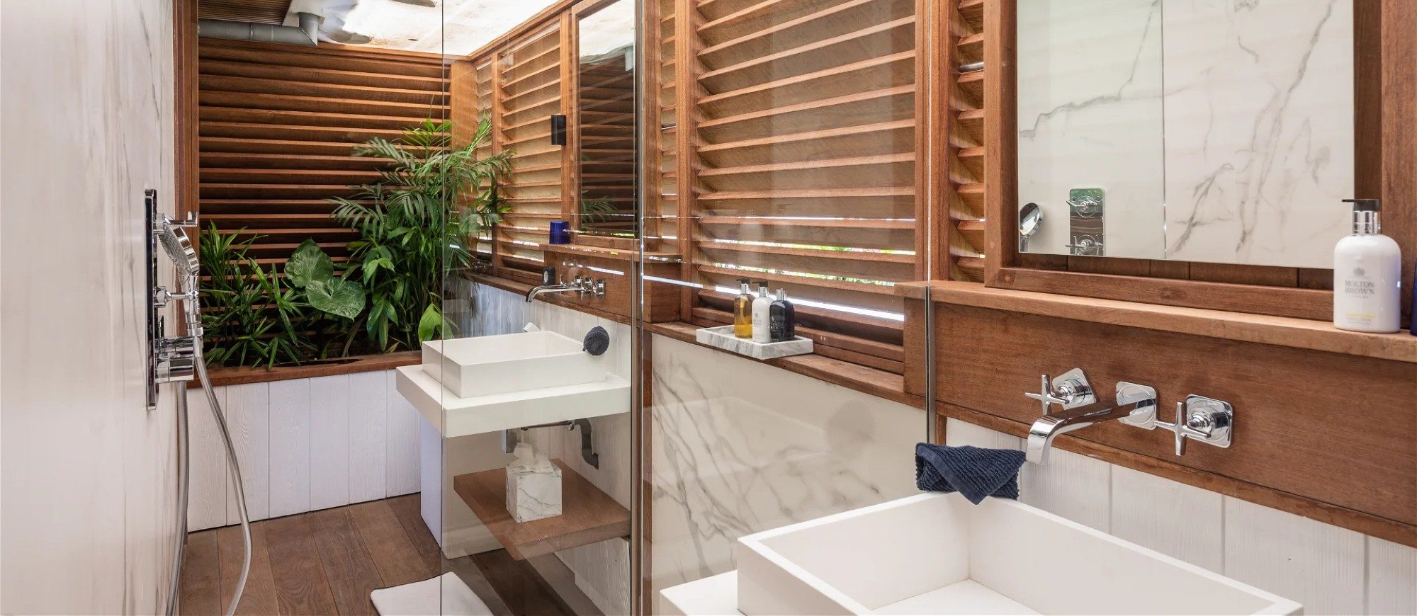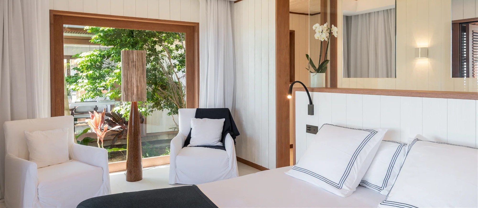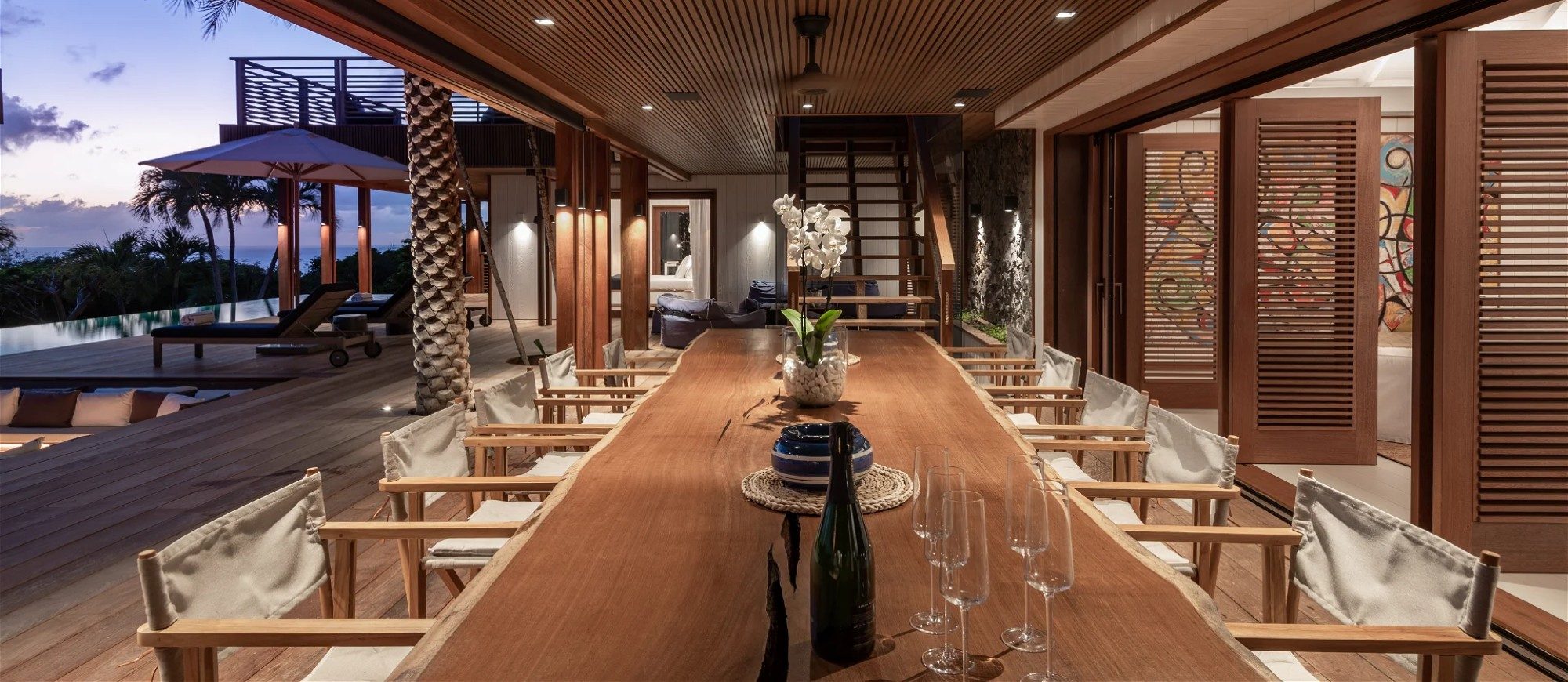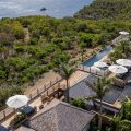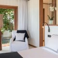 The property has six air-conditioned bedrooms with en-suite bathrooms featuring white marble, some with additional outdoor showers. All are furnished with king size beds in a bright and soft decor. Four bedrooms open onto the pool terrace, and the other two look over the tropical garden.