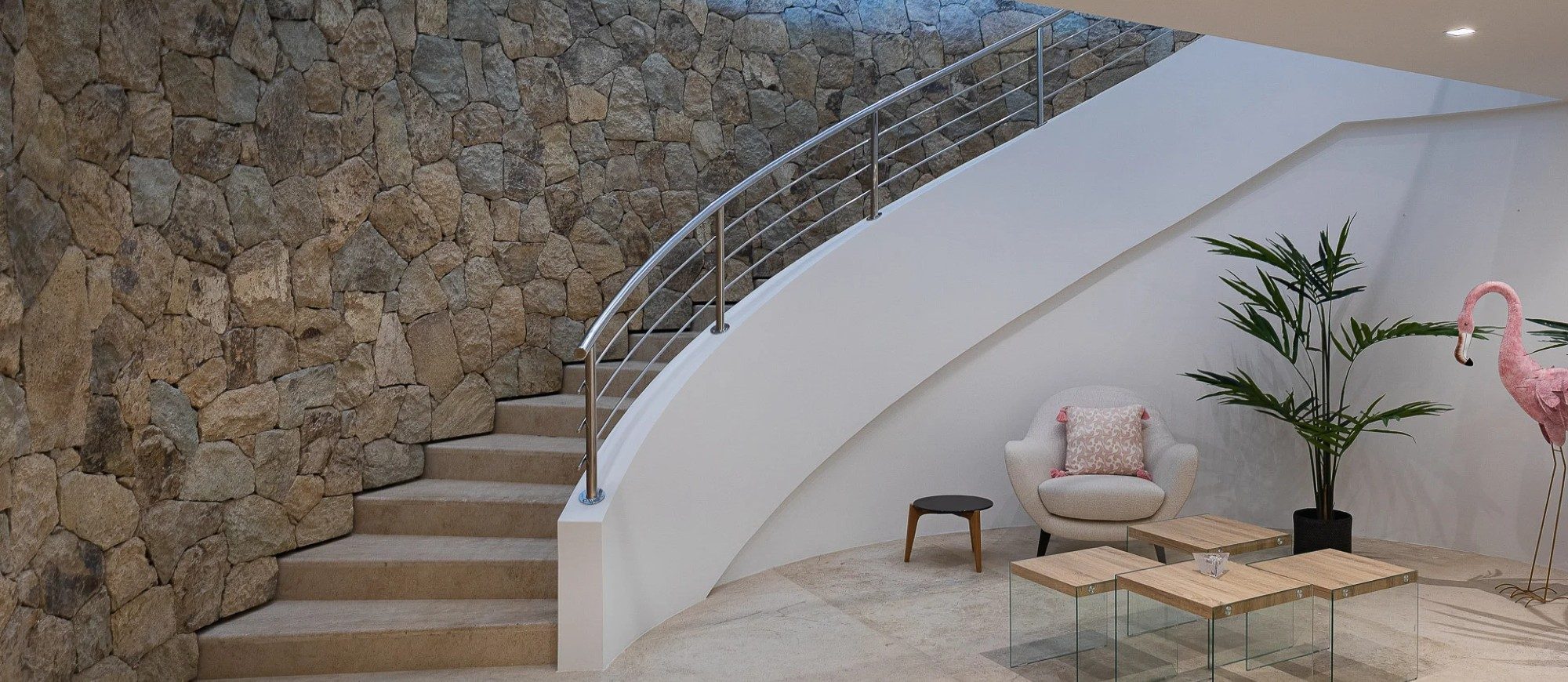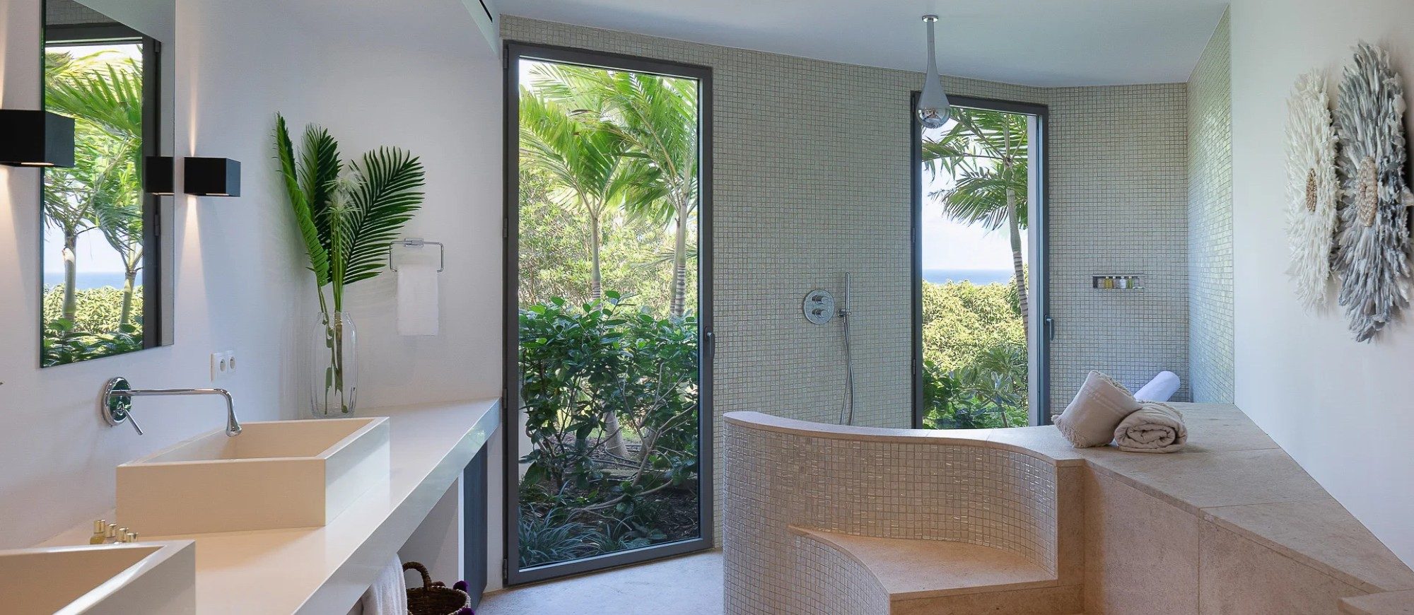 There are seven air-conditioned bedrooms, with king size beds and en-suite bathrooms. Three of them are on the main level, while the other four located on the lower level. Each bedroom offers privacy and great comfort, a bright decor and amazing views over the ocean and the tropical palm trees.