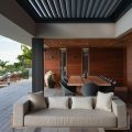 Expansive lounge area on the covered terrace, facing the panoramic view.