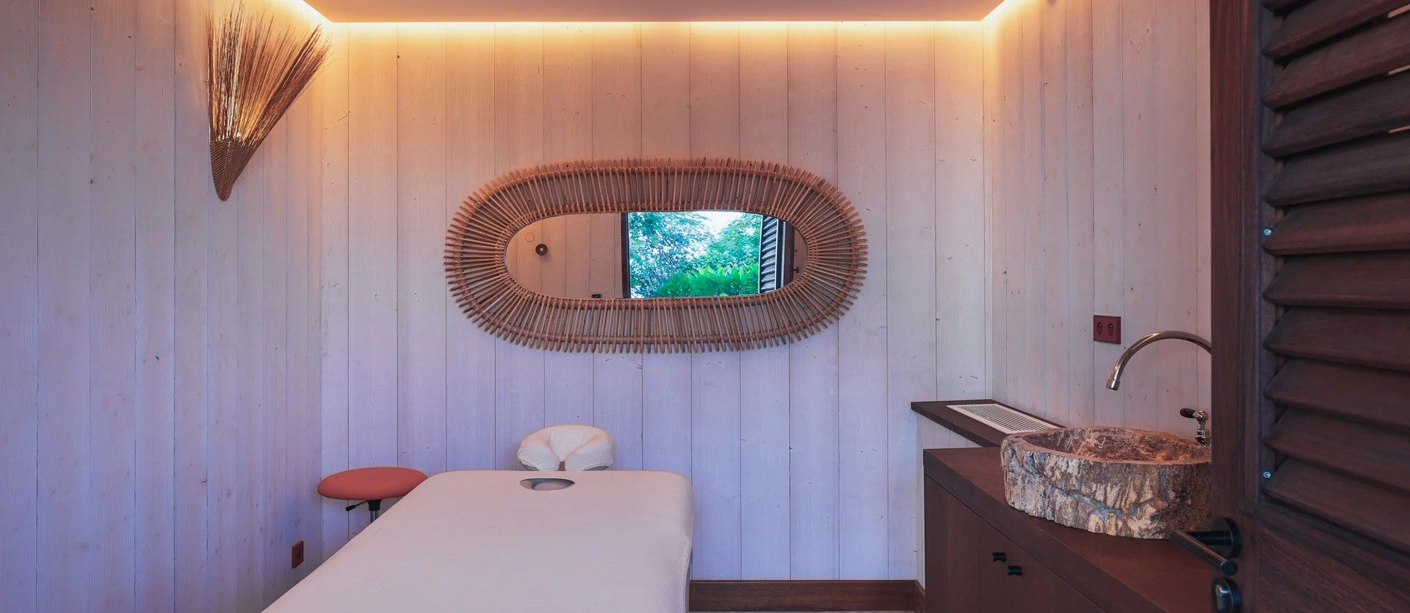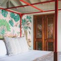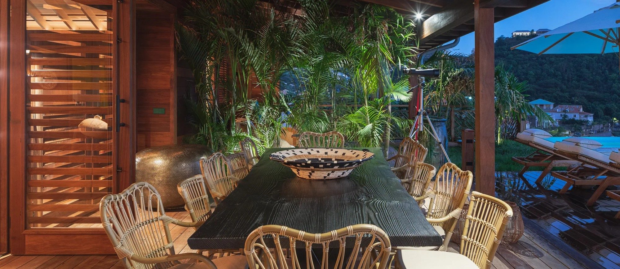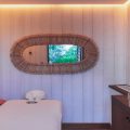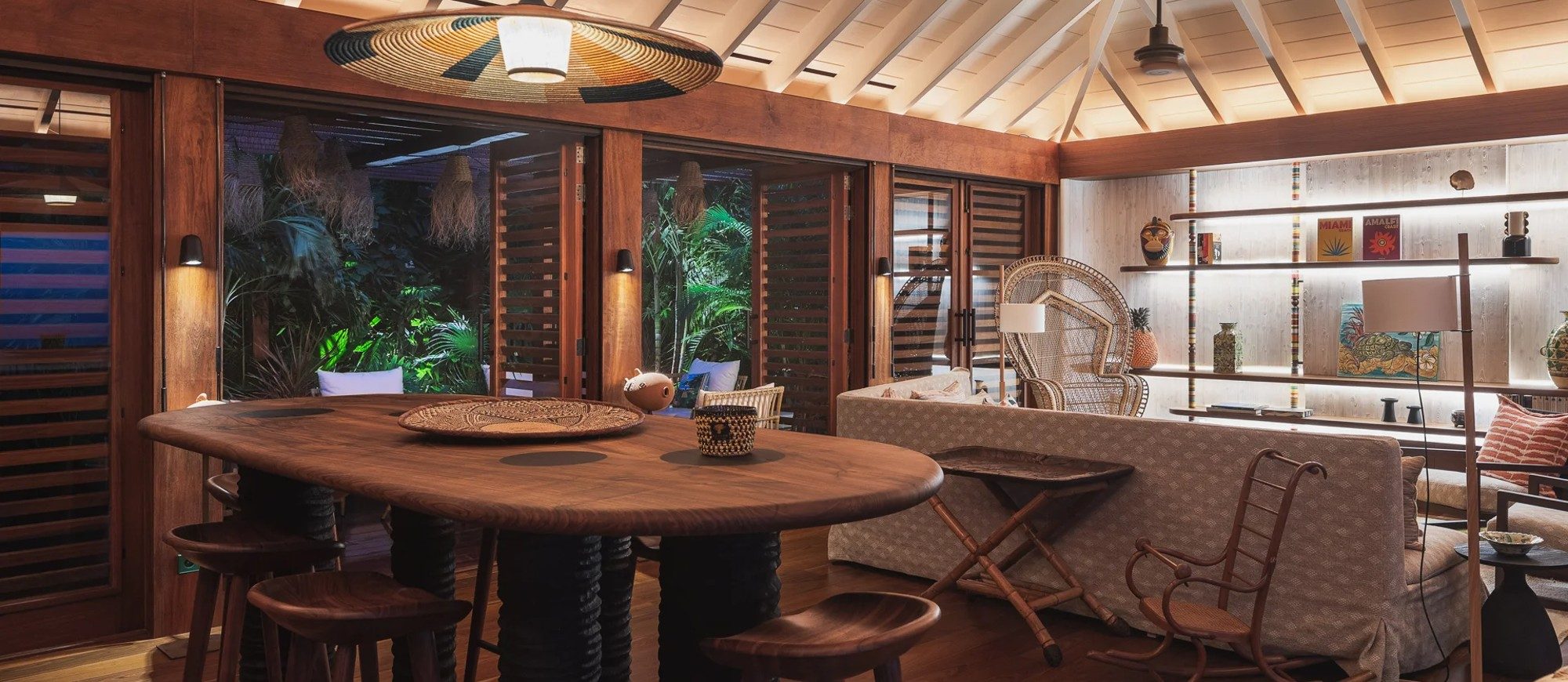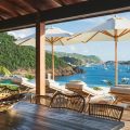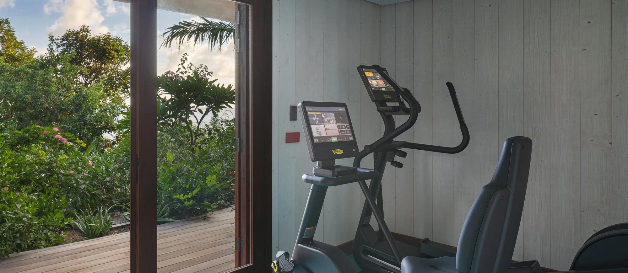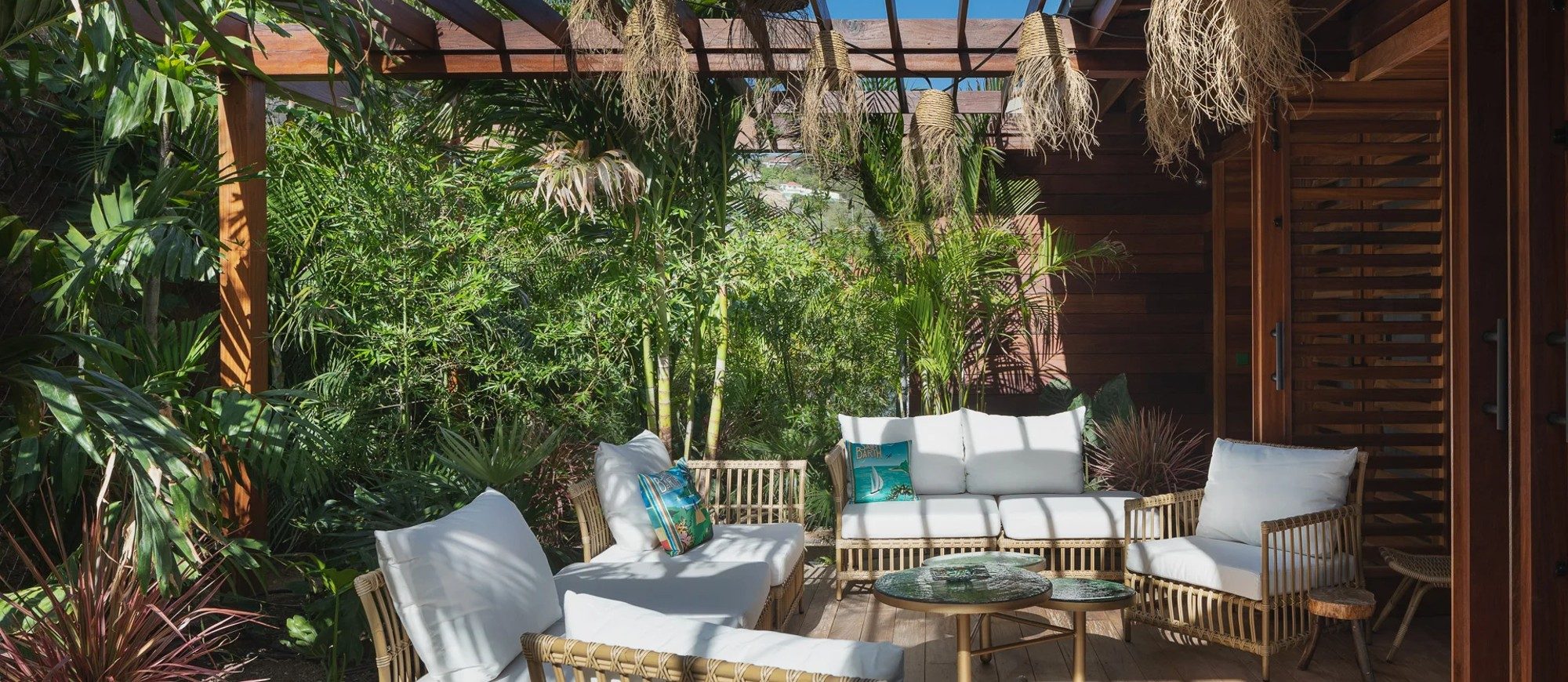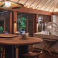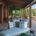The property consists of four king bedrooms with adjoining bathrooms and views over the ocean and the vegetation. The master room is located close to the living room, while the other three are spread over independent bungalows; all have king size beds and furnished terraces. Inspired by the Caribbean, the bedrooms’s decor features bright colours combined with natural materials such as wood and wicker. What’s more, on the lower level a fitness room and a massage room are at your disposal during your stay; a fifth bedroom is also available upon request.