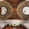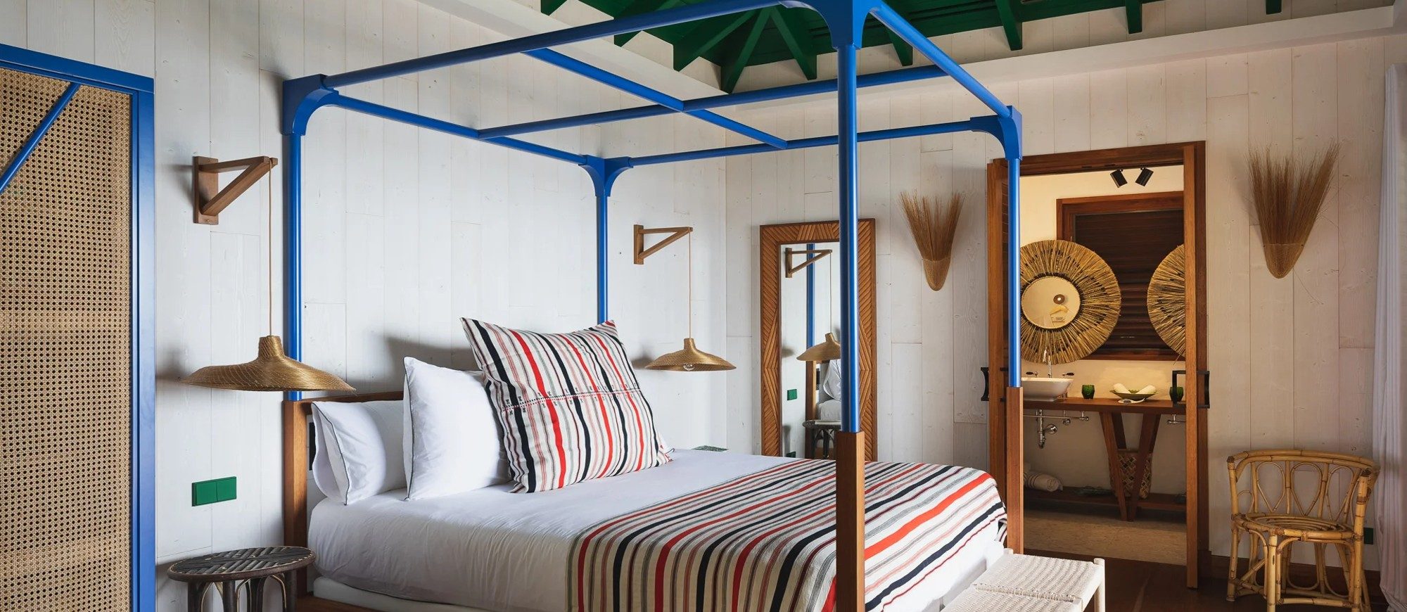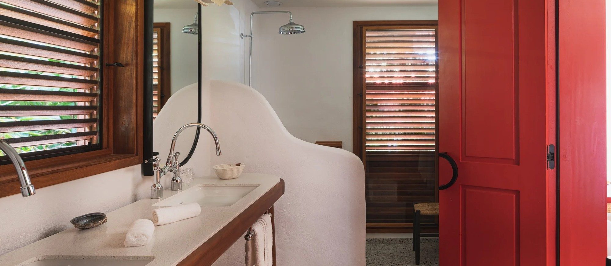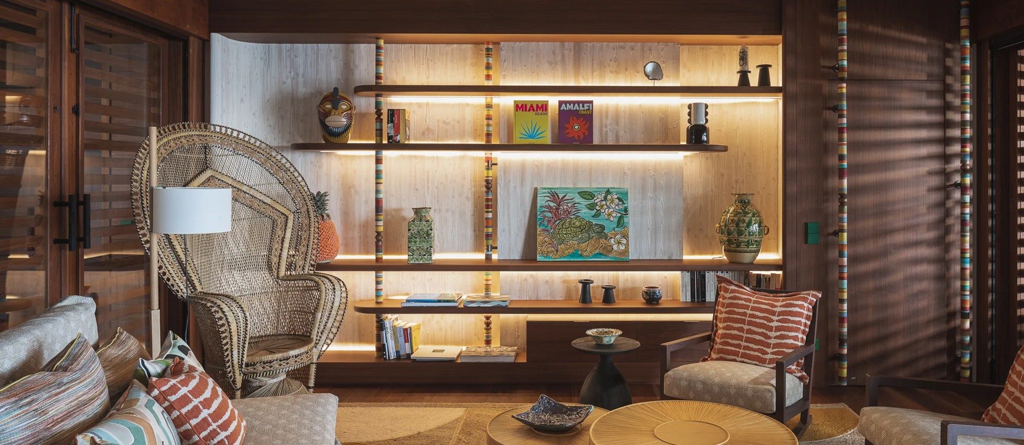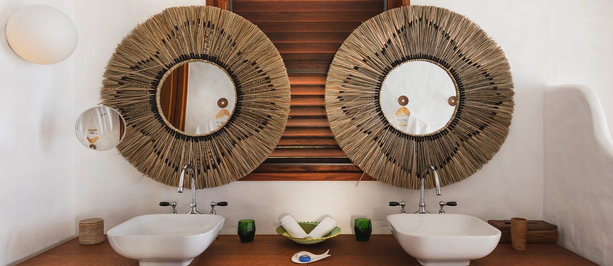 The property consists of four king bedrooms with adjoining bathrooms and views over the ocean and the vegetation. The master room is located close to the living room, while the other three are spread over independent bungalows; all have king size beds and furnished terraces. Inspired by the Caribbean, the bedrooms’s decor features bright colours combined with natural materials such as wood and wicker. What’s more, on the lower level a fitness room and a massage room are at your disposal during your stay; a fifth bedroom is also available upon request.
