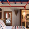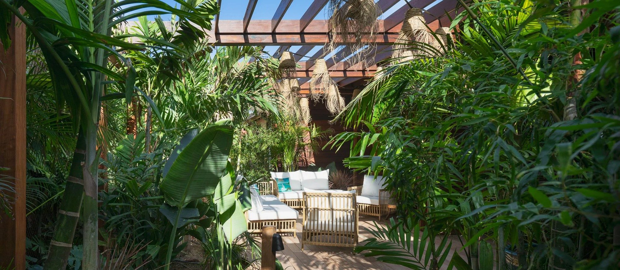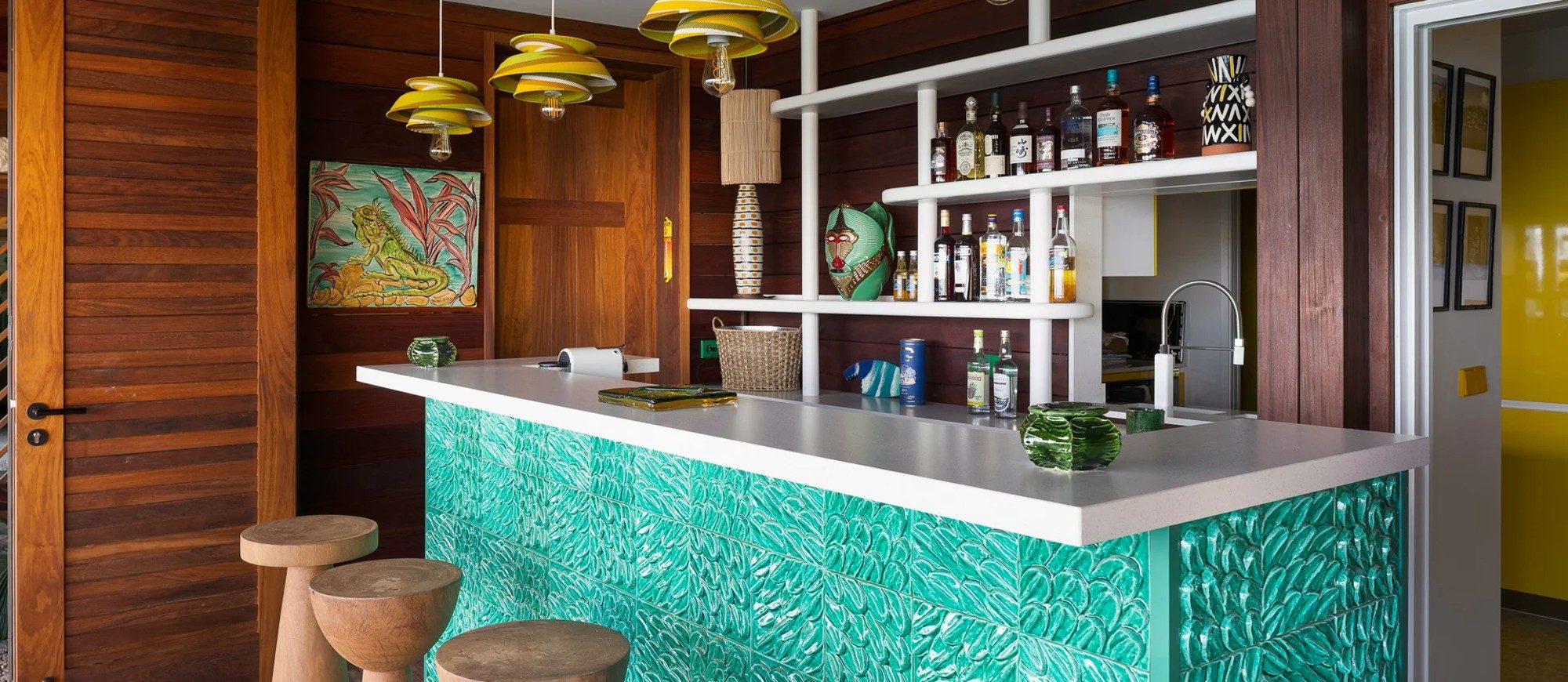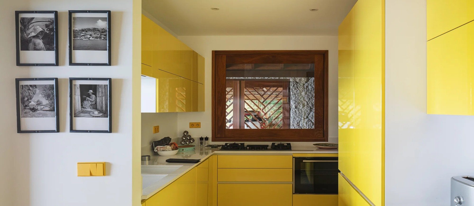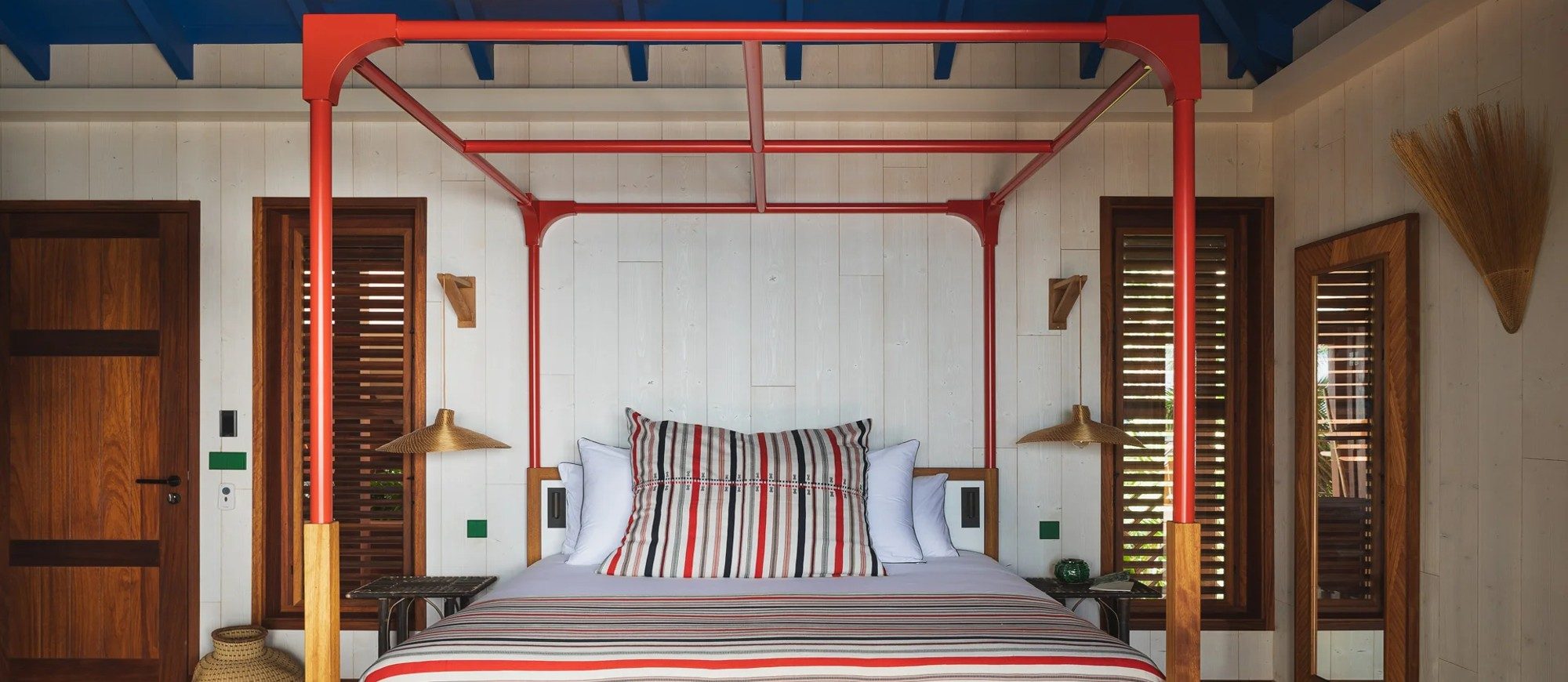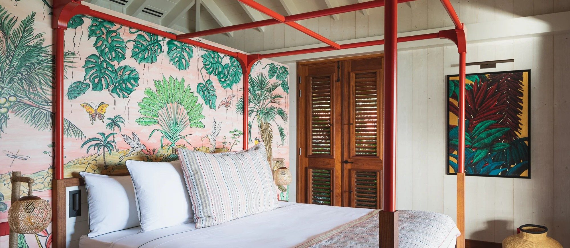 The property consists of four king bedrooms with adjoining bathrooms and views over the ocean and the vegetation. The master room is located close to the living room, while the other three are spread over independent bungalows; all have king size beds and furnished terraces. Inspired by the Caribbean, the bedrooms’s decor features bright colours combined with natural materials such as wood and wicker. What’s more, on the lower level a fitness room and a massage room are at your disposal during your stay; a fifth bedroom is also available upon request.