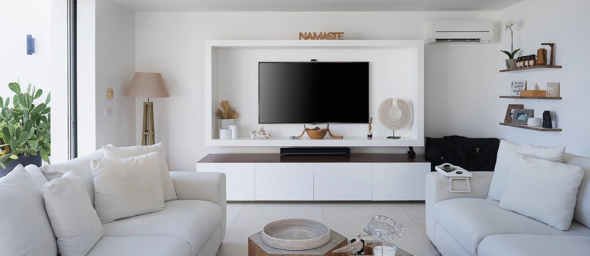 King size bed, air conditioning, HD-TV, safe, dressing room. Ensuite bathroom with indoor Italian shower, hair dryer, towels and beach towels.