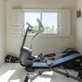 Air-conditioned, HD-TV, weights, step machine, yoga mats, fan.