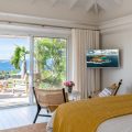Located in a separate bungalow, at the entrance of the property. A king size bed, air conditioning, ceiling fan, HD-TV, Dish Network, safe, dressing room. Ensuite bathroom with indoor Italian shower, double sink, and WC. The bedroom opens onto a private garden terrace, with a view on Marigot bay.
