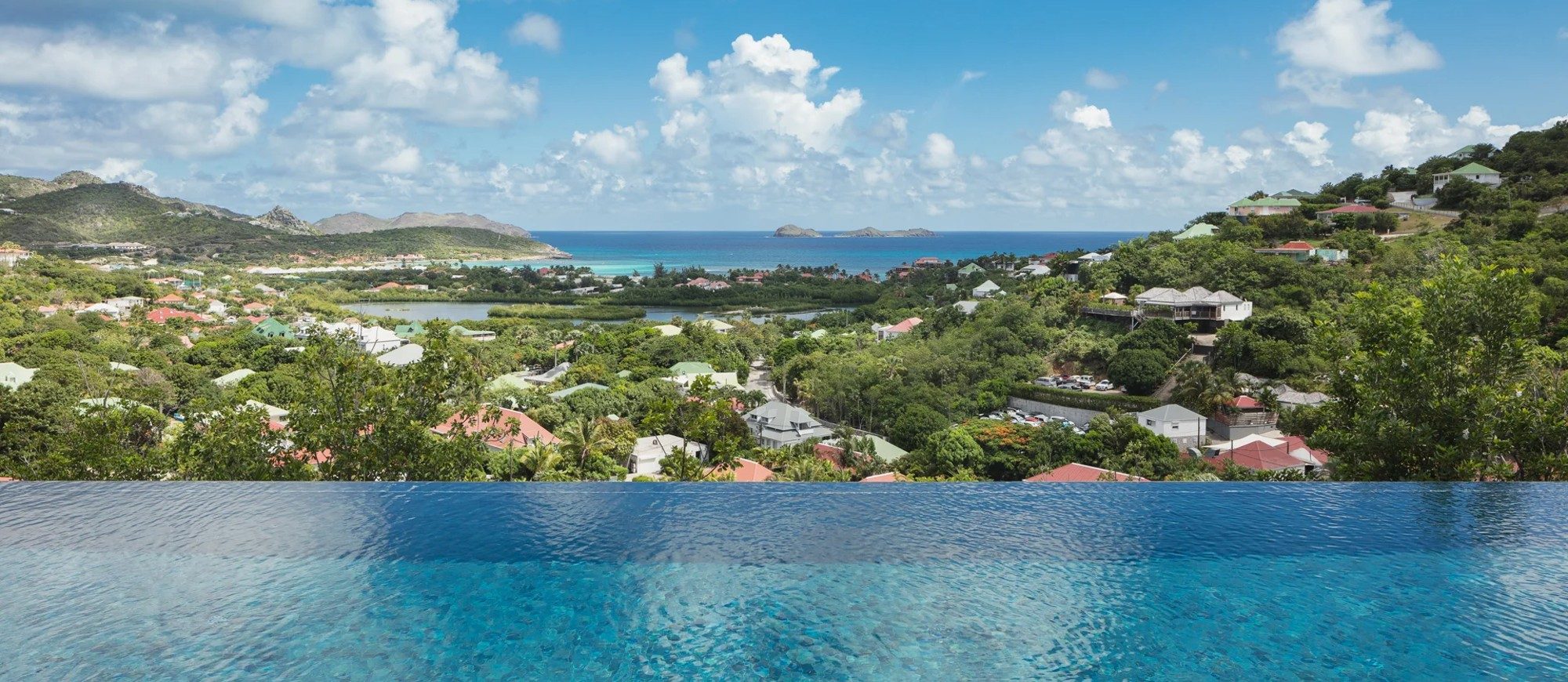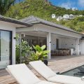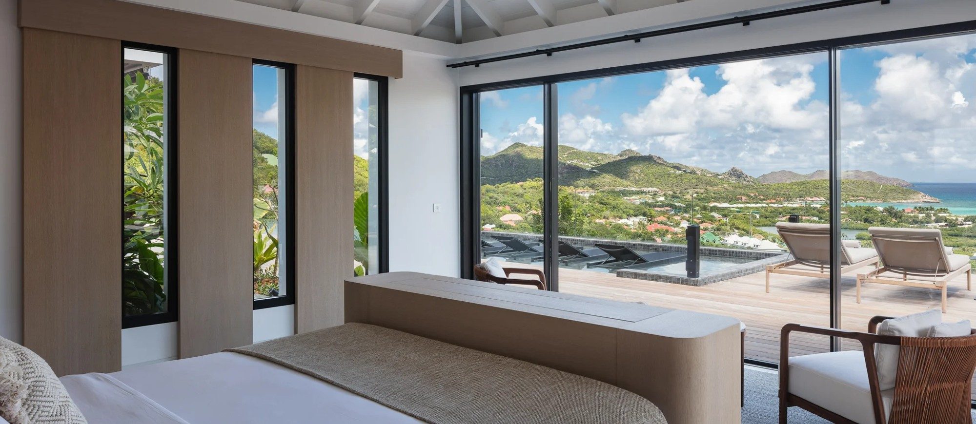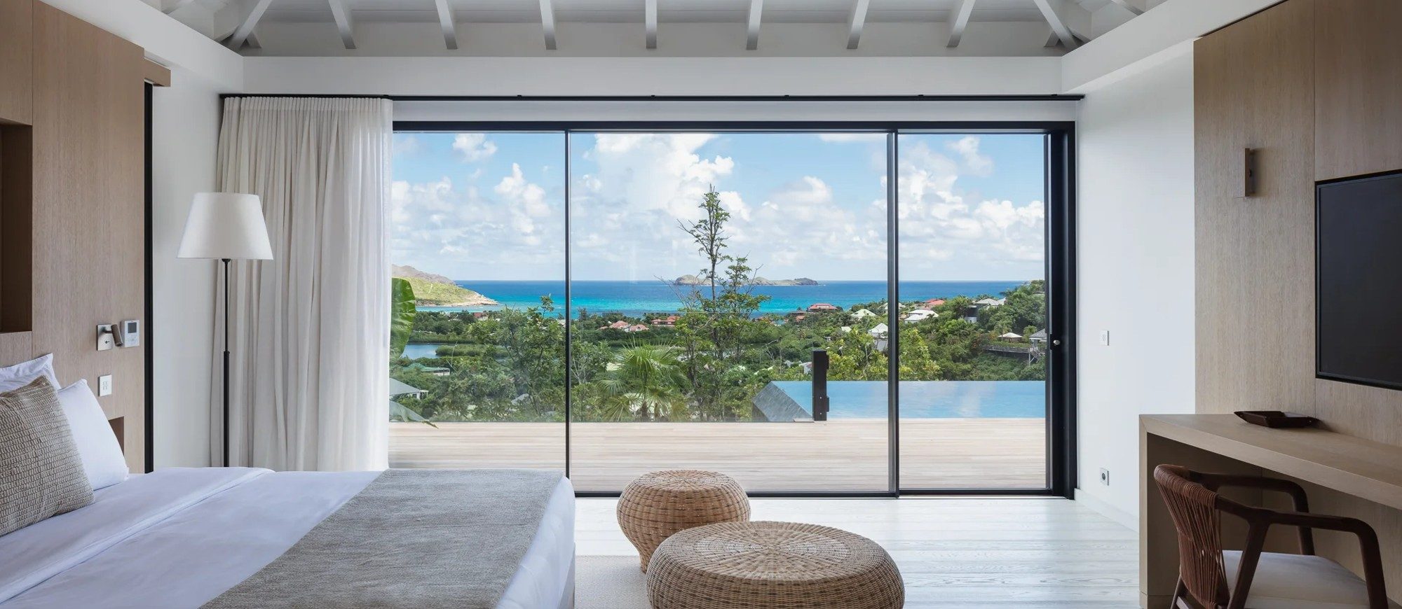 This is a prestigious five-bedroom property with fantastic views over St-Jean Bay. Luxurious and very spacious, the villa with a heated swimming pool and a fitness room offers upscale amenities for an outstanding stay. Set in a tropical environment with the blue hues of the sky and the ocean, this is a true architectural gem.