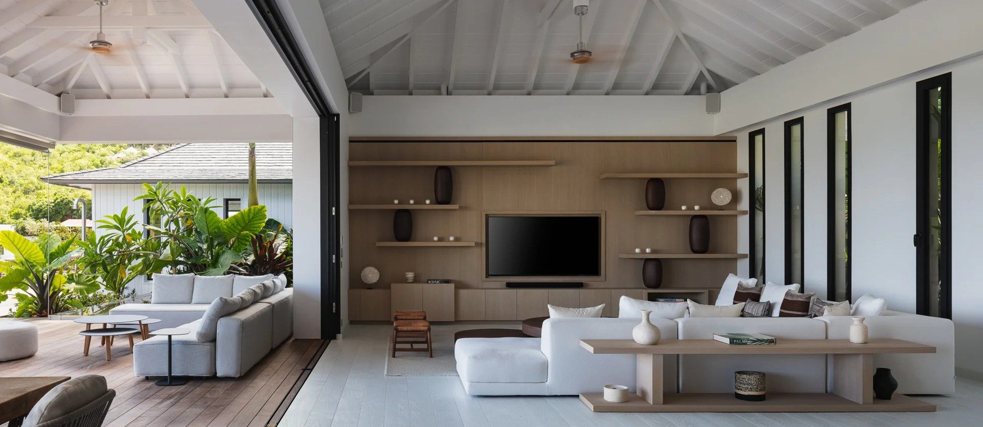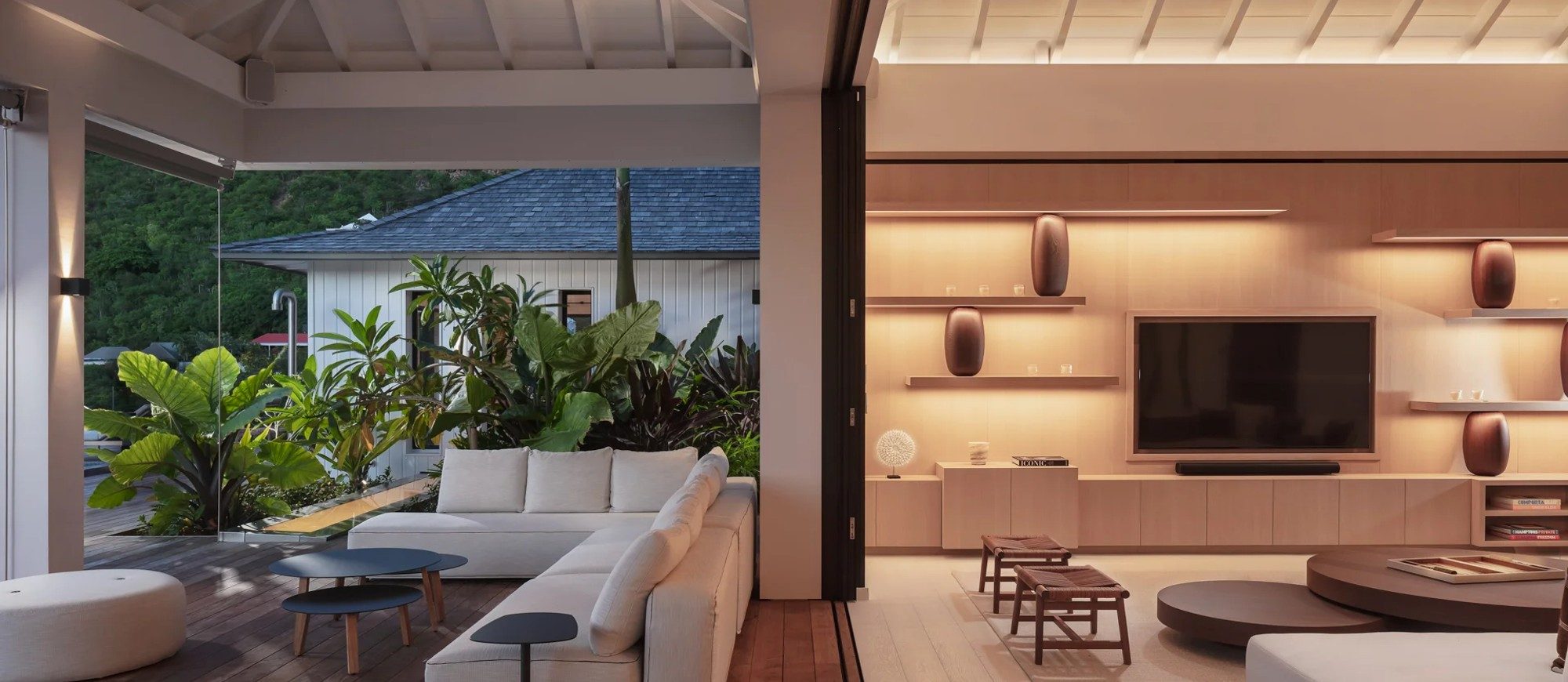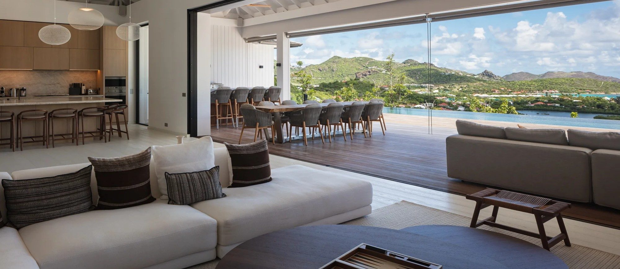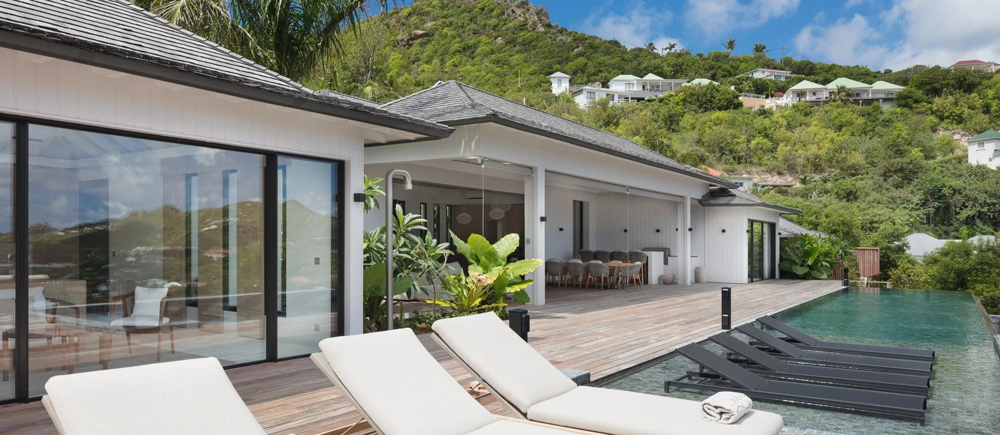 This is a prestigious five-bedroom property with fantastic views over St-Jean Bay. Luxurious and very spacious, the villa with a heated swimming pool and a fitness room offers upscale amenities for an outstanding stay. Set in a tropical environment with the blue hues of the sky and the ocean, this is a true architectural gem.