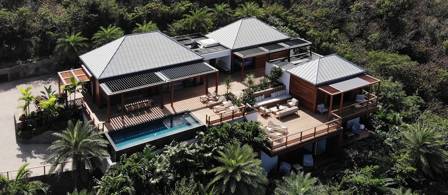 Recently built villa with several pavilions, with great view over Marigot Bay