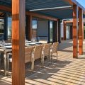 Fully equipped. Electric oven, gas stove, microwave, refrigerator, mixer, centrifuge, freezer, dishwasher, Nespresso machine, blender, kettle, toaster, breakfast bar with stools. A barbecue and breakfast bar is on the covered terrace. Inside dining are in the great living room. Outside dining table on the covered terrace.