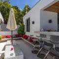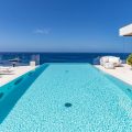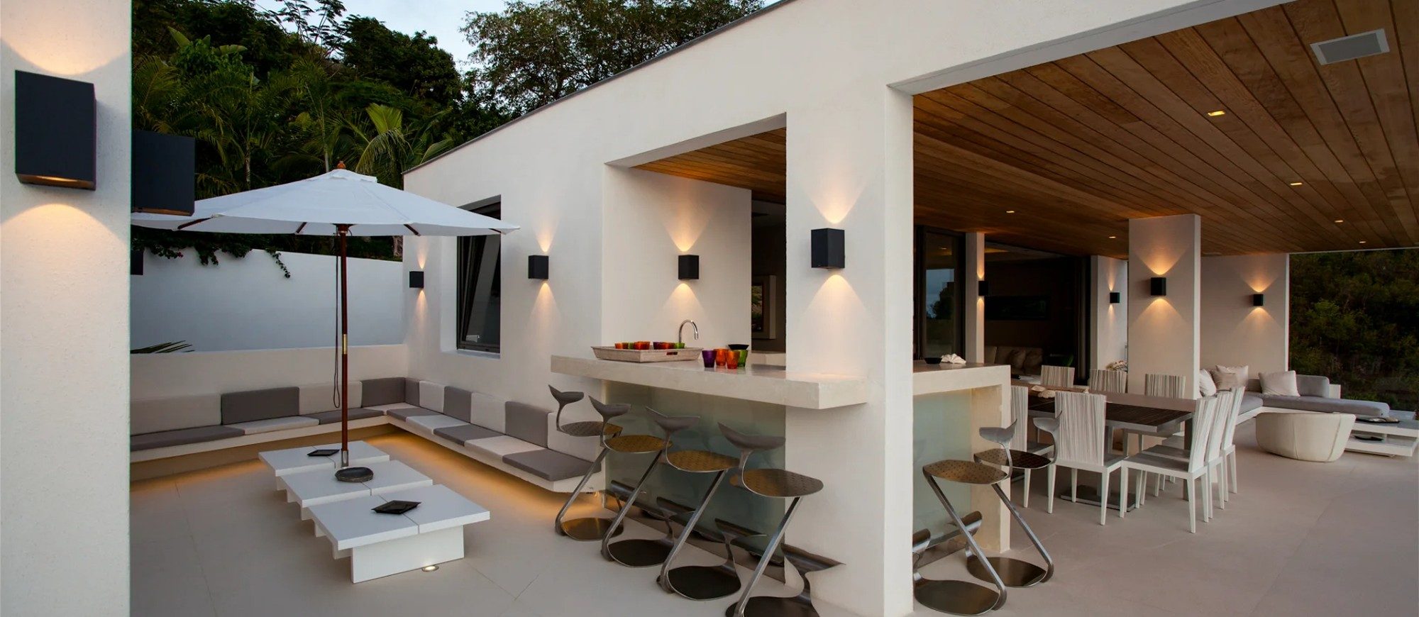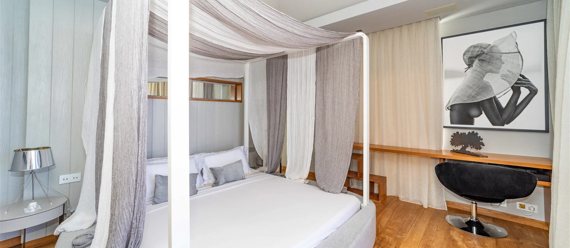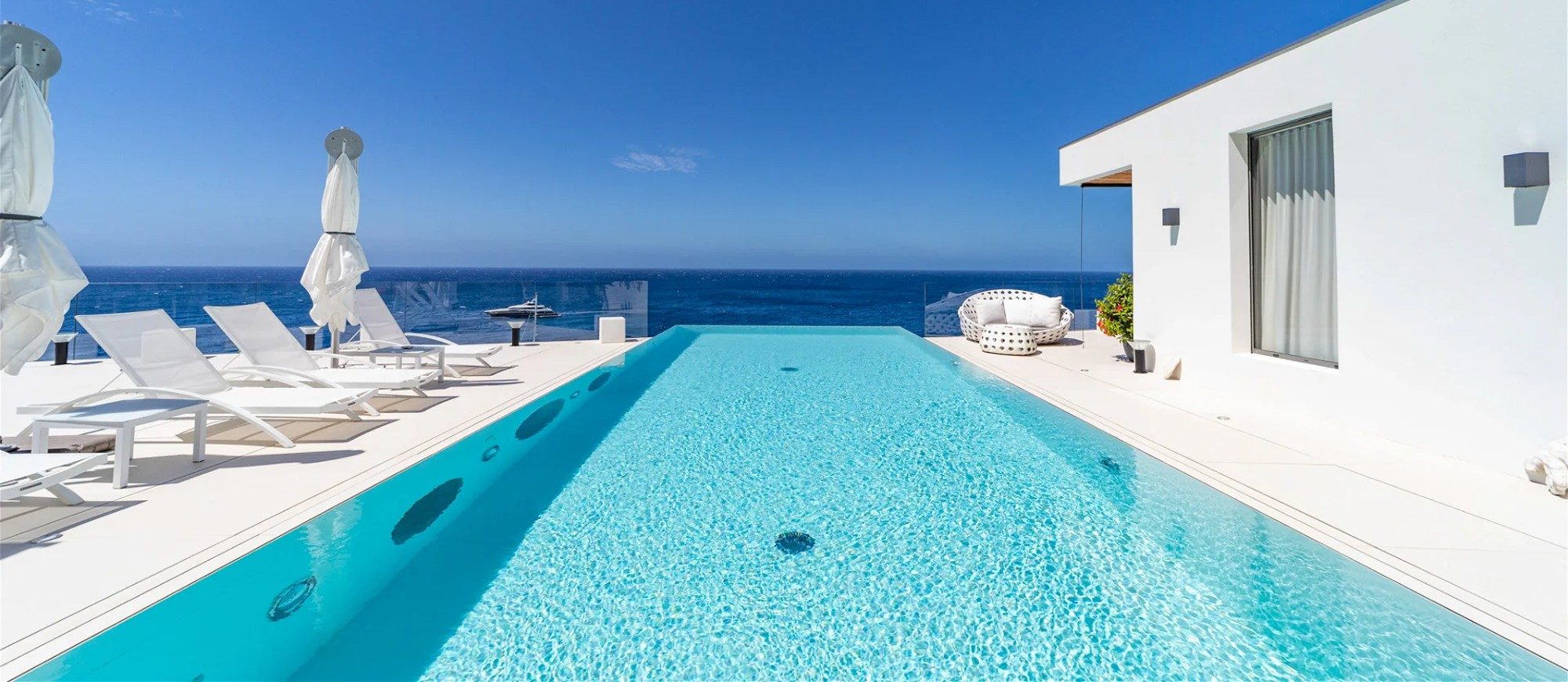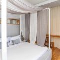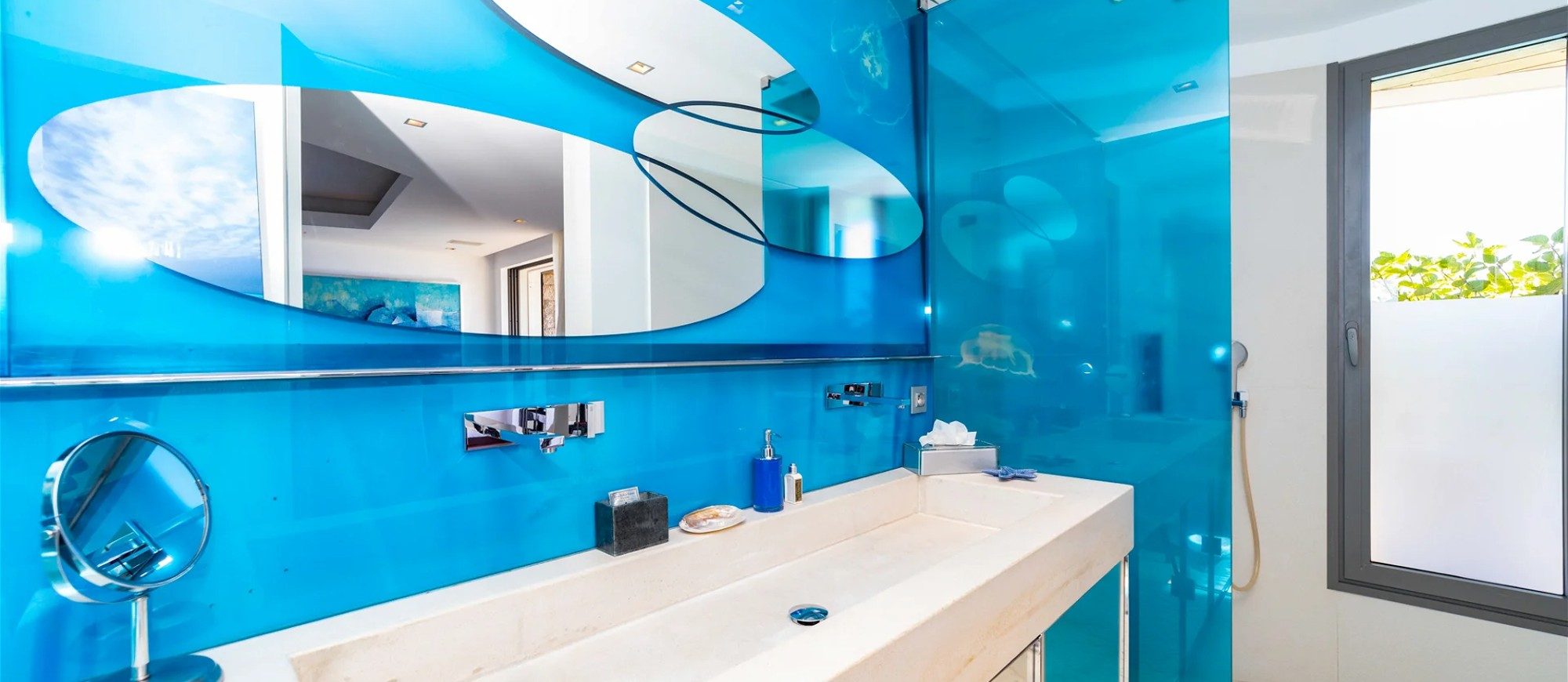 There are five beautiful air-conditioned bedrooms furnished with king or queen size beds, with en-suite bathrooms. Three of the bedrooms are on the lower level and offer stunning ocean views, while the other two ones are on the main level and open onto the pool deck. In a soothing white and grey decor, guests enjoy quiet and tranquillity. What’s more, at the back of the villa, a lovely zen garden welcomes you for morning coffee, meditation time or yoga sessions.