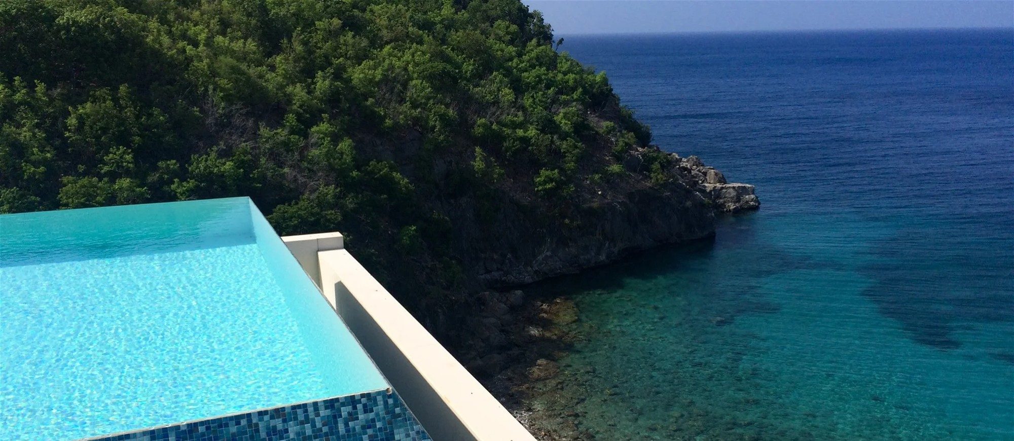 The villa is a beautiful blend of luxury and refined comfort, a very modern and high-quality home. The glorious sunsets are outstanding from the terrace with a breath-taking view over the neighbouring islands of Statia and St. Kitts. The living room is equipped with a home cinema and furnished with a spacious sofa covered with cushions in a very cozy atmosphere, featuring touches of shells and driftwood. The beautiful dining room can accommodate up to twelve guests inside for festive meals prepared in the well-equipped kitchen. You can call upon a private chef at any time. Through the wide opening onto the terrace, the living room offers a splendid view over the deep blue ocean, in an idyllic scenery of wooded hills.