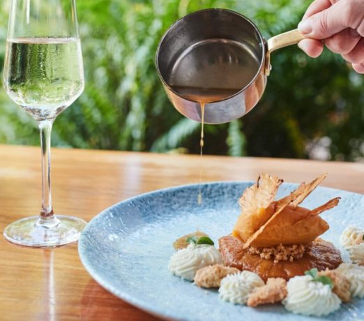 Delicate, precise, generous and creative cuisine. A fusion between a French terroir and local tasty touches. Traditional flavors mingle with Caribbean exoticism. Our cuisine is gourmet, familial, authentic and is every evening shared. Inspired by our Chef’s countless and wonderful travels, from the Arctic to the Amazon and the Panama Canal, between revisited classics and twisted uninhibited cuisine, seasonal products are always in the spotlight. In the heart of our tropical jungle, the symphony of simplicity takes slowly place, orchestrated by Chef Jérôme Lebeau and his creative brigade. Healthy, fresh, balance without forgetting the unique signature of our Chef: the peps, citrus flavors that enhance and balance each of his dishes. Fresh local tiradito, Saint-Jacques carpaccio, smoked veal chop in its morel crust, foie-gras ‘mi-cuit’, lobster or tender octopus… There is something for all tastes and appetites, something to make your mouth water, for all « hearty eaters ».